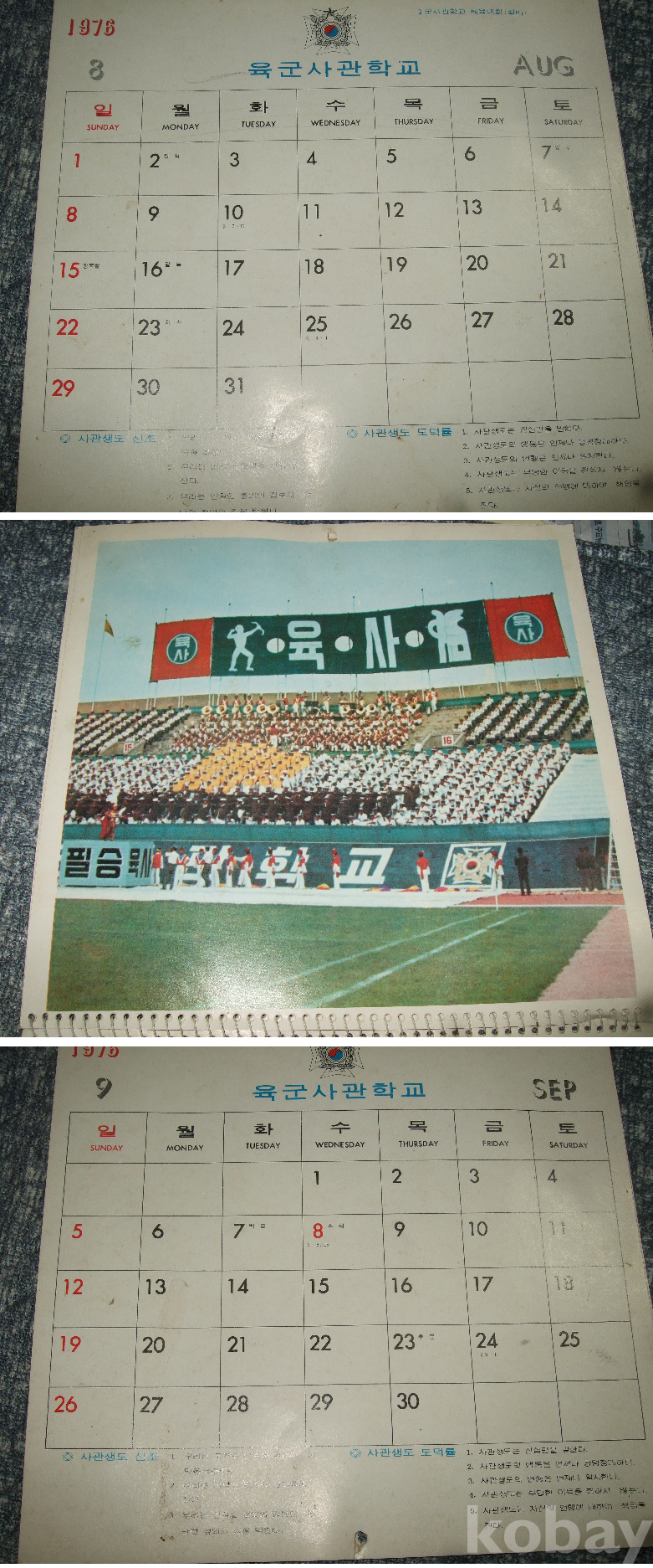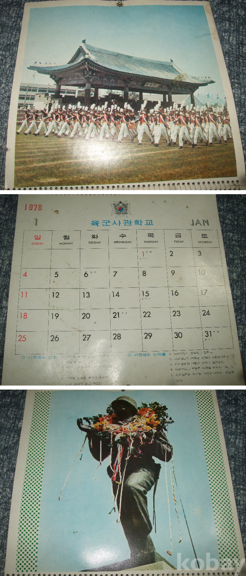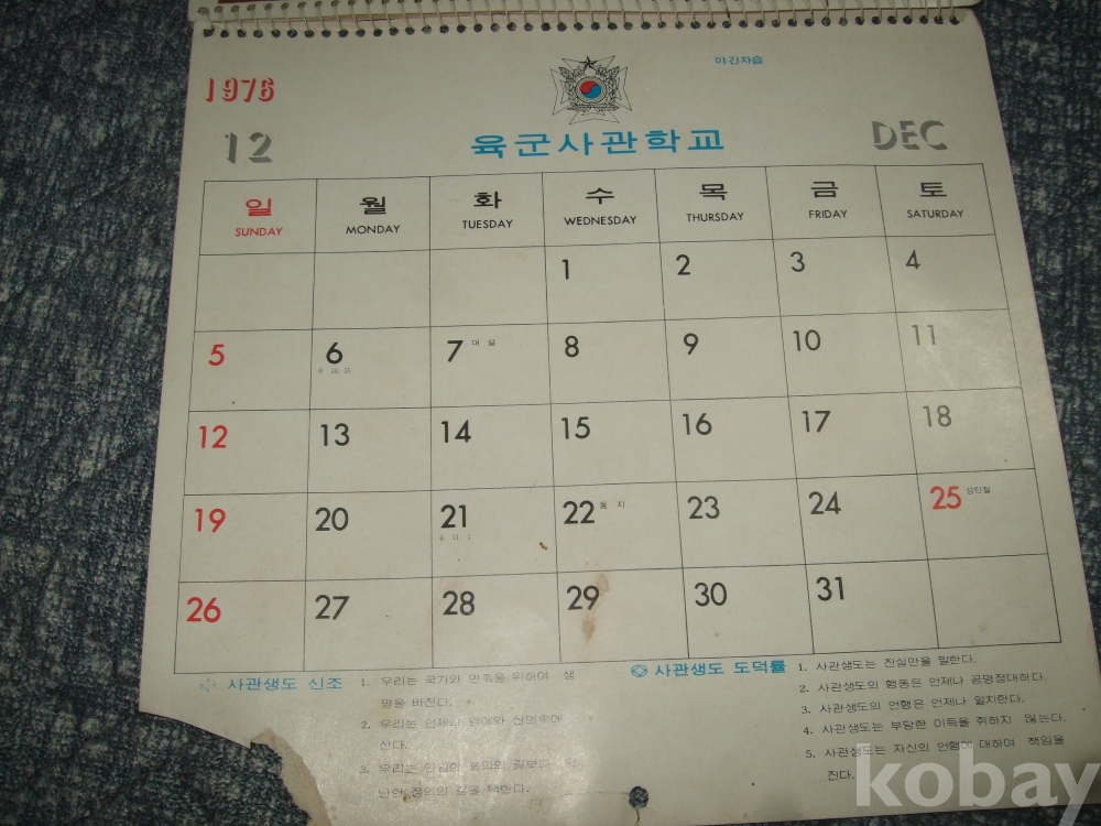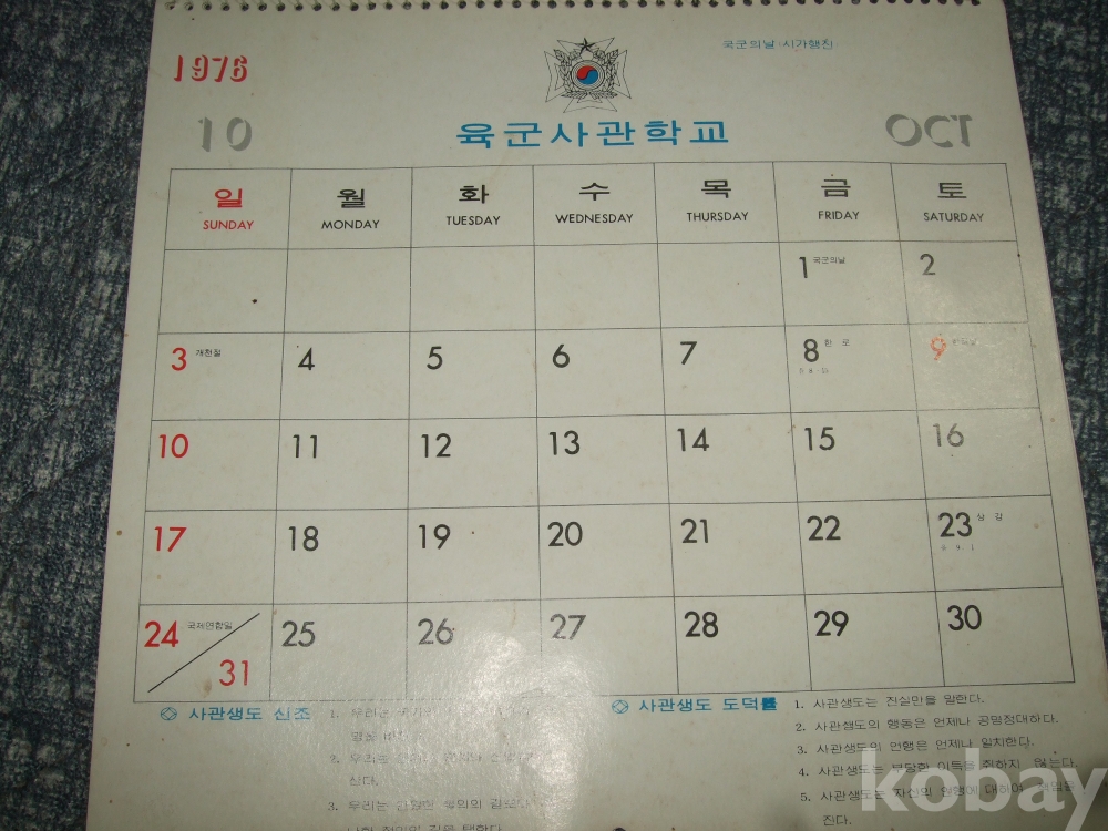 1976년 육군사관학교 벽걸이 달력(13장 완품)