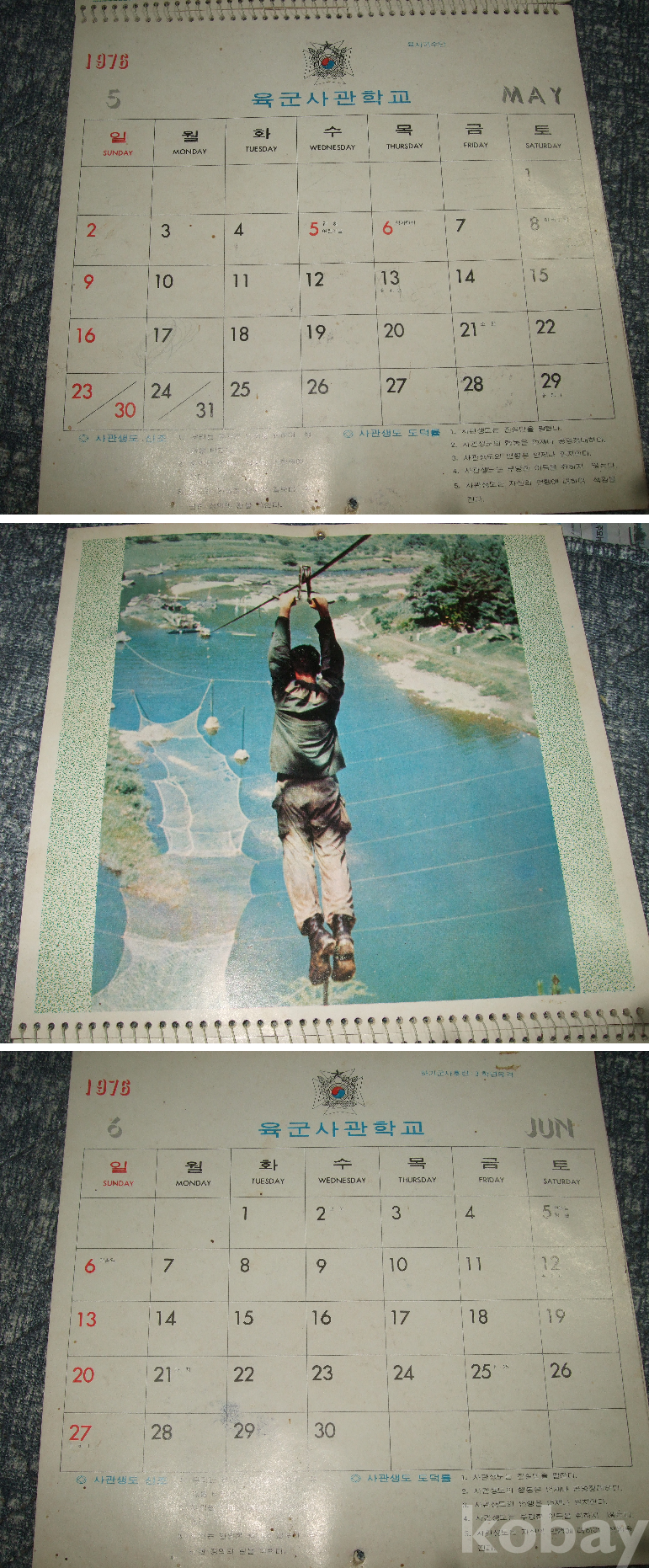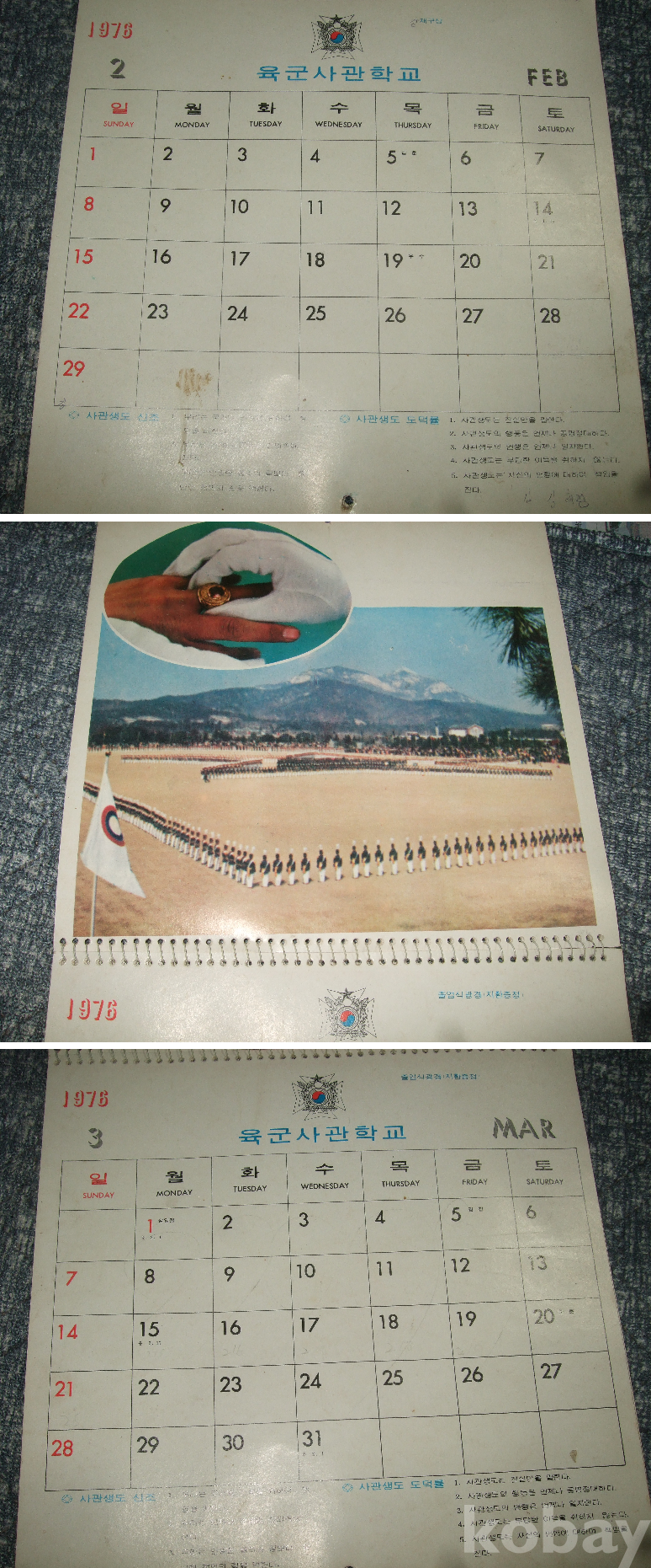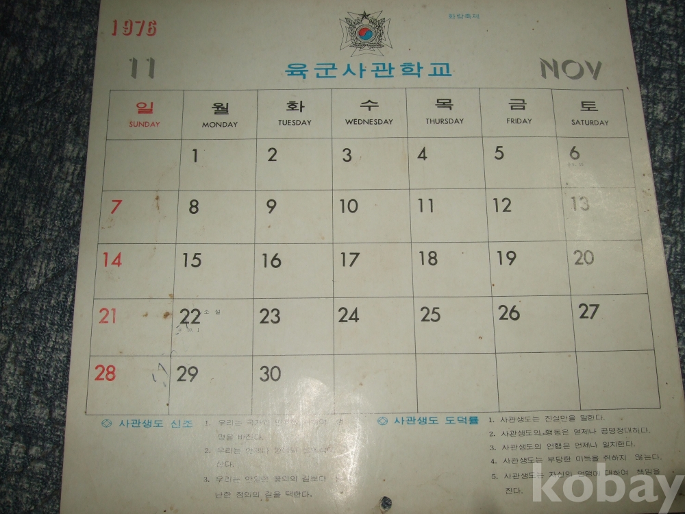1976년 육군사관학교 벽걸이 달력(13장 완품)