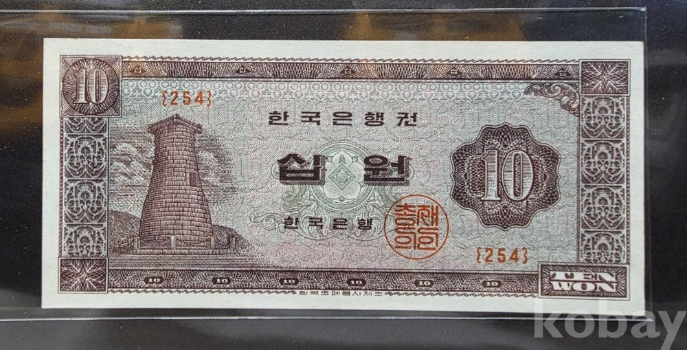 -대한민국 첨성대 십원 판번호 254번 미사용 지폐 입니다.
