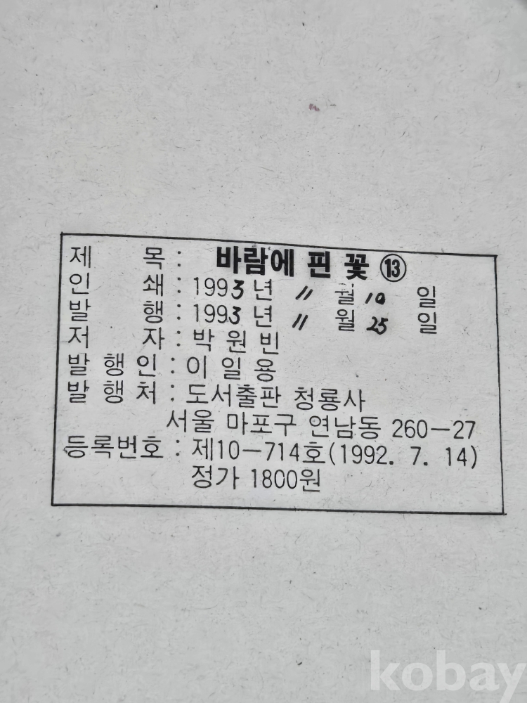 80-90 만화방 == 박원빈 글.그림 == 바람에핀 꽃 == 13권 완질