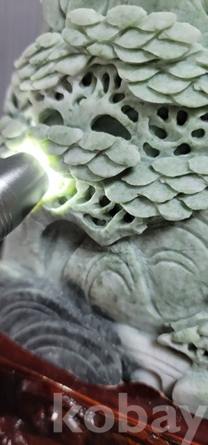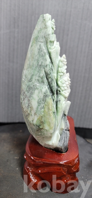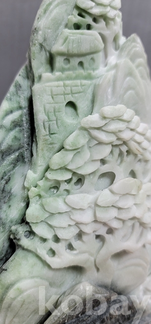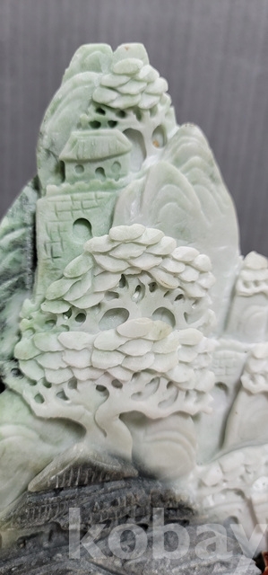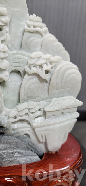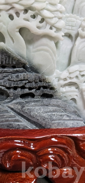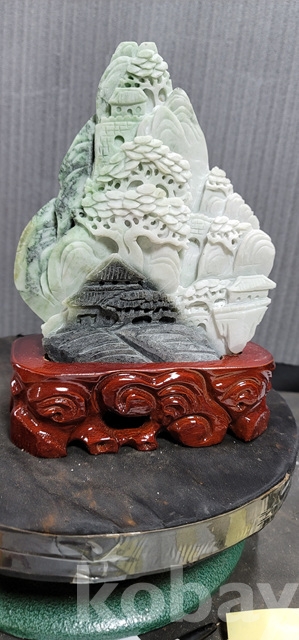 k-39.천연옥으로정교하게깍아만든 산수문양 장식품(통나무로깍은좌대포함)