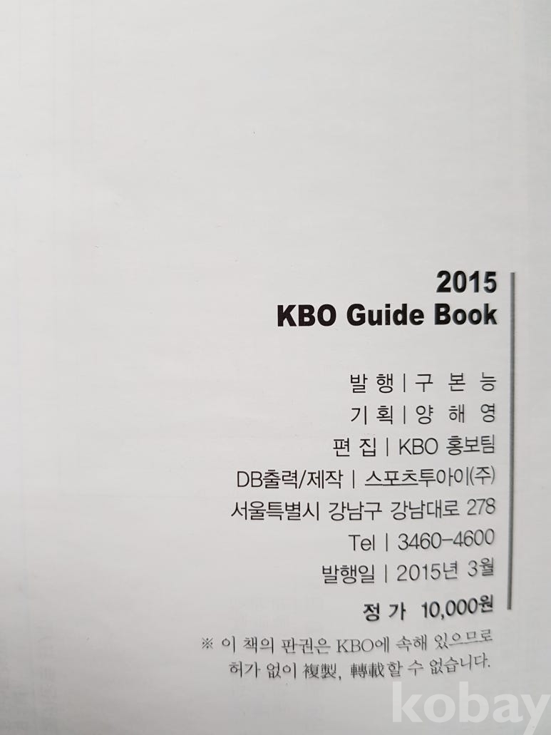 제목: 2015년 KBO OFFICIAL GUIDE BOOK 판매