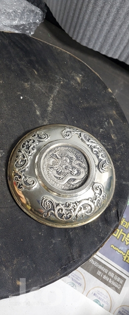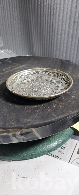 b-150.조각이잘된 백동박쥐문 찻접시