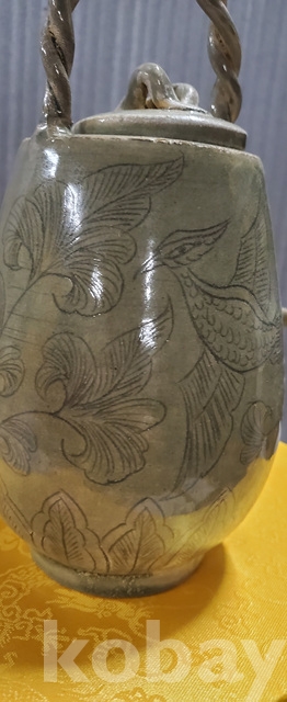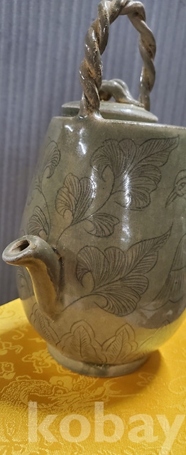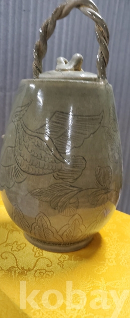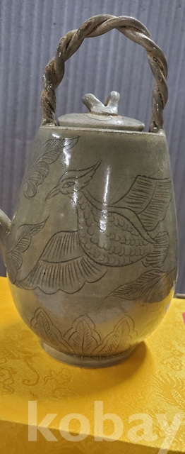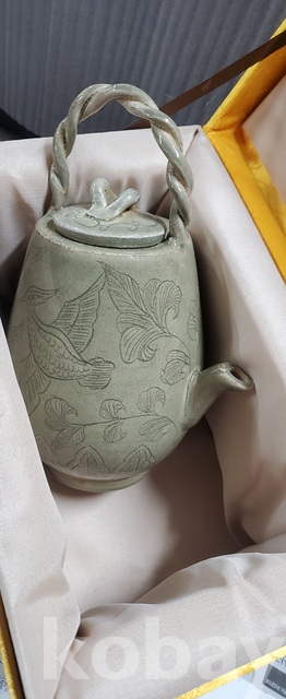 b-120..고급상자에 담긴 오래된 송연청자 상감들어간 r기러기문 술주전자