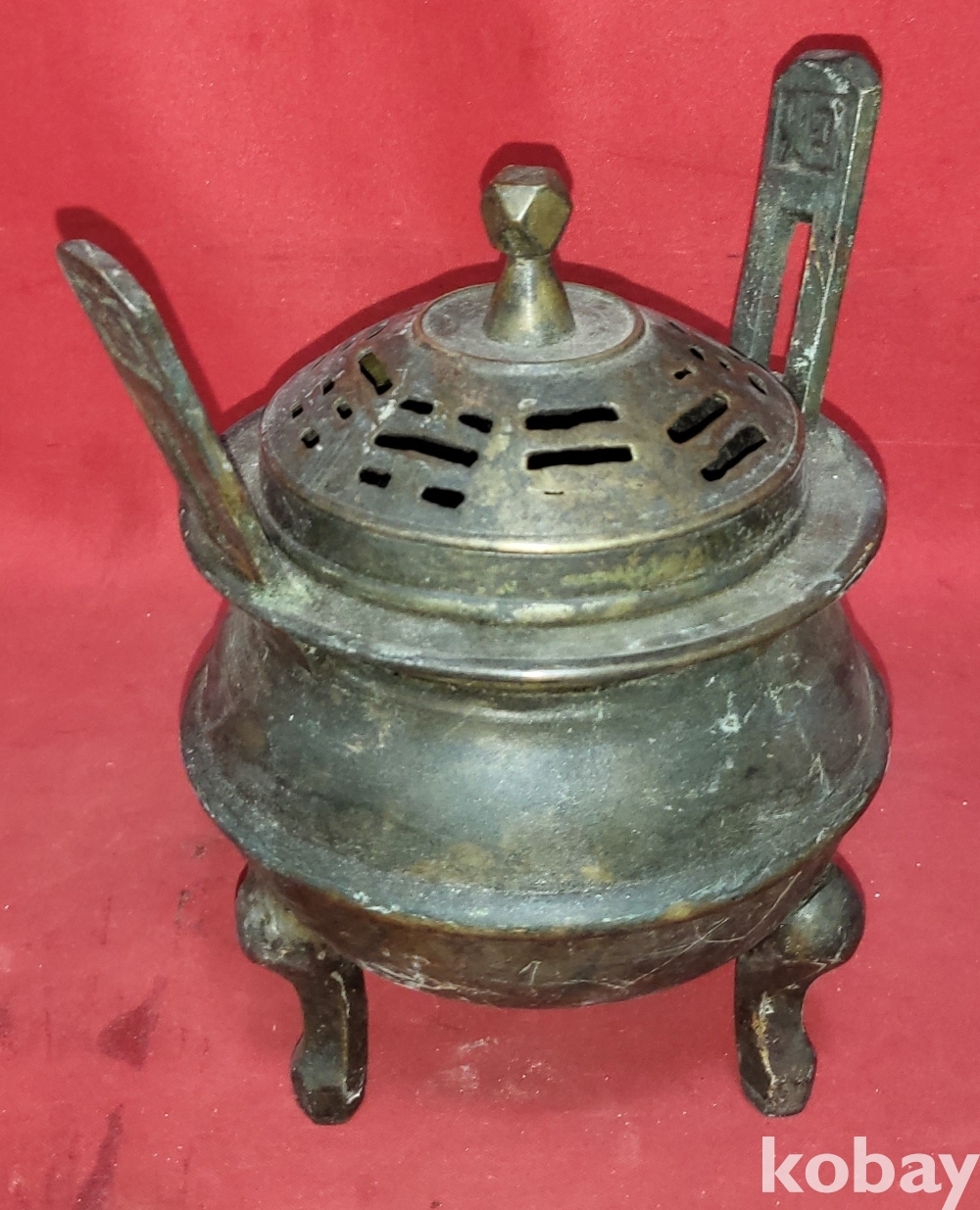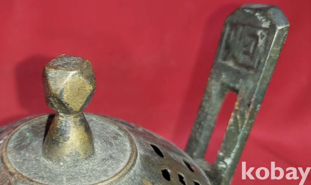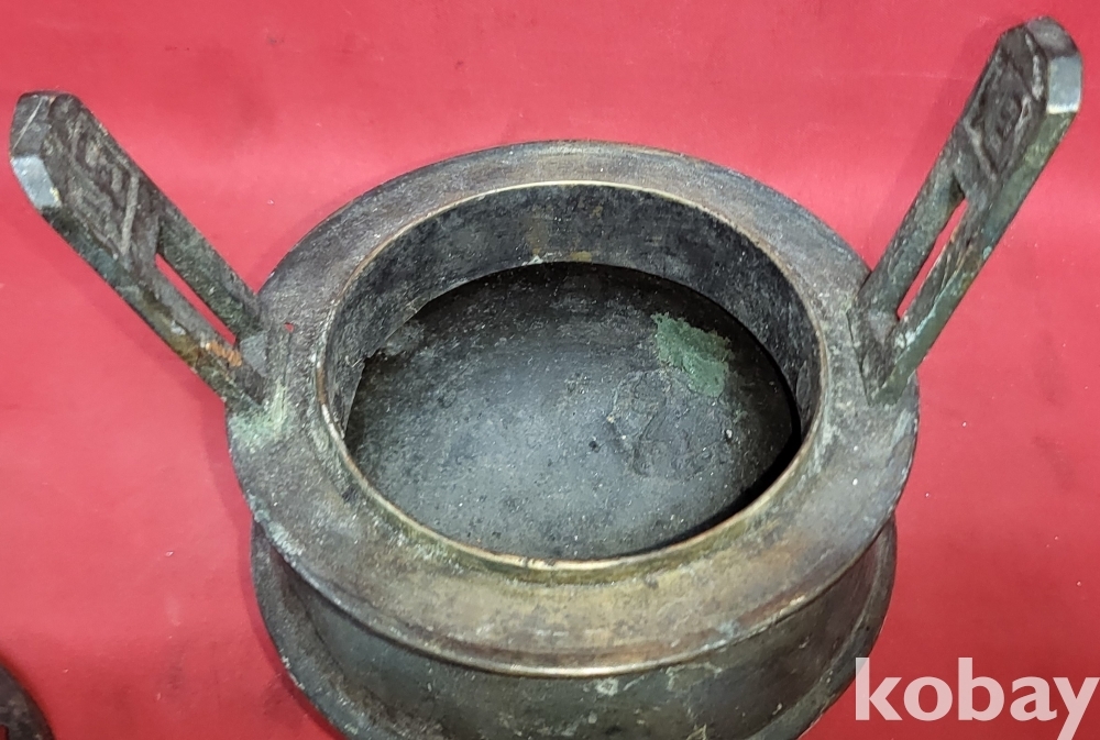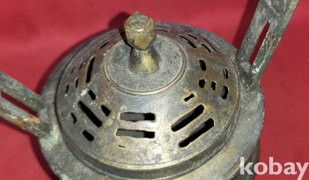 조선시대 청동((靑銅)으로 만든 8괘 문양 손잡이는 12면체 삼족 청동향로(靑銅香爐)입니다,