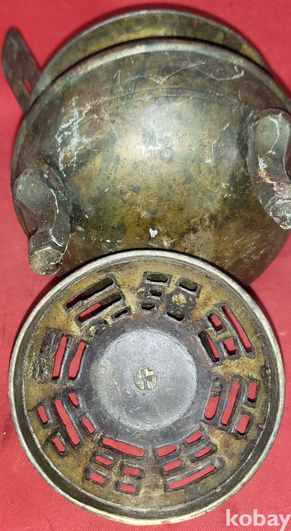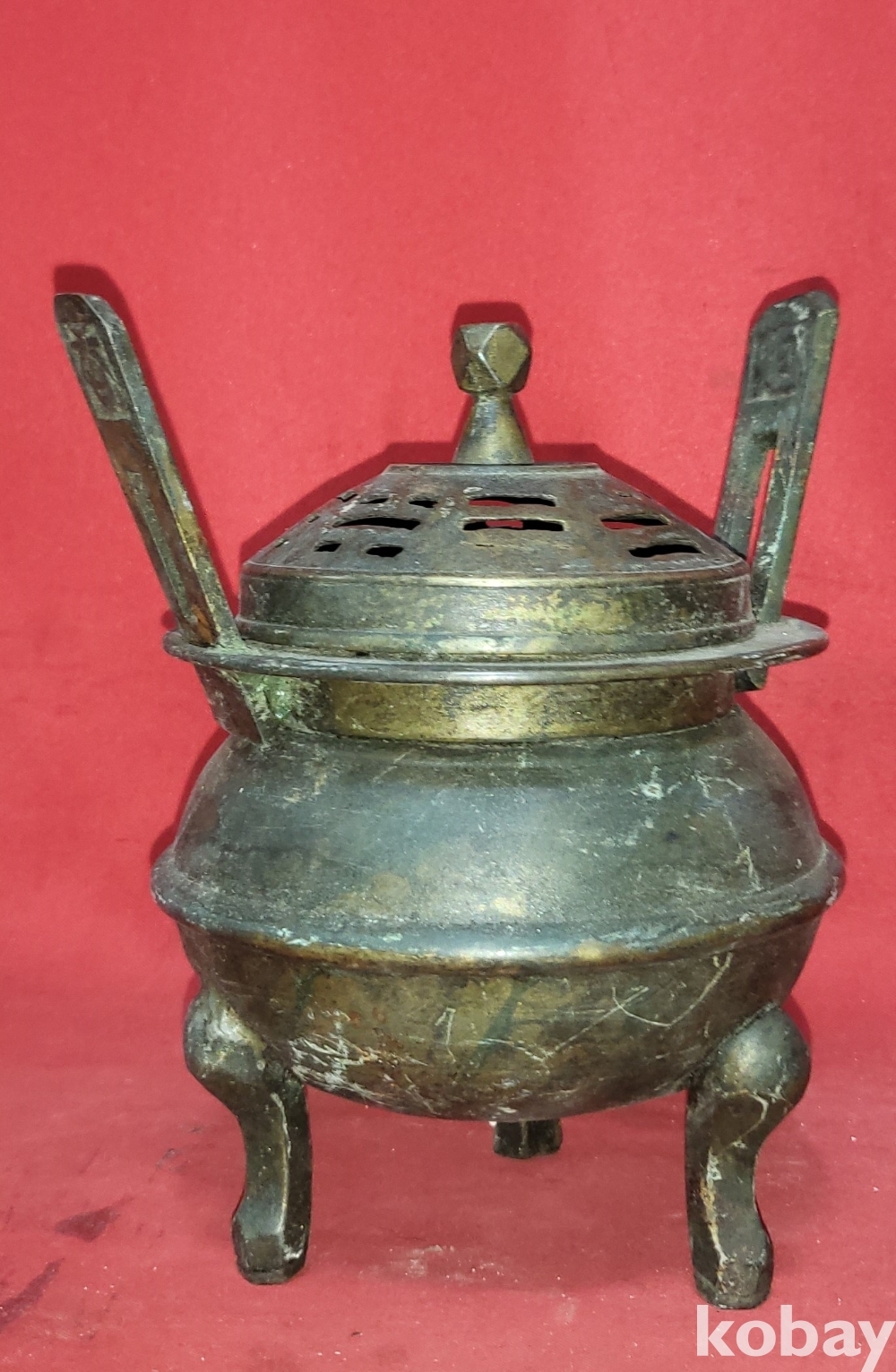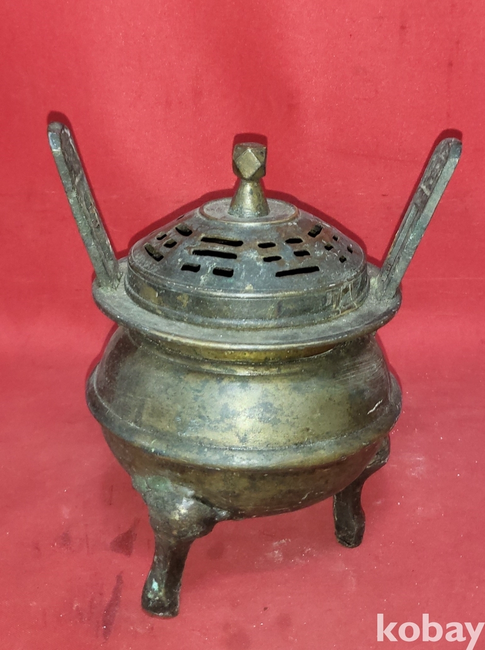 조선시대 청동((靑銅)으로 만든 8괘 문양 손잡이는 12면체 삼족 청동향로(靑銅香爐)입니다,