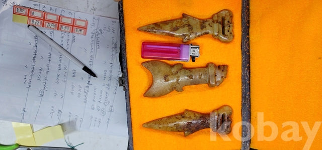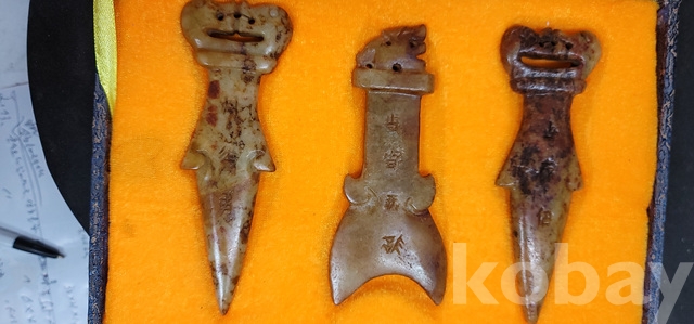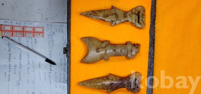 b-96.케이스에든 천연 옥으로깍아만든 오래딘백옥장신3개일괄