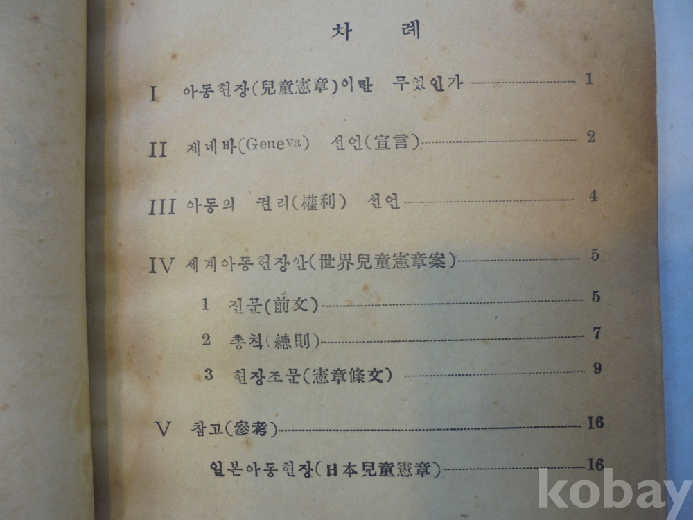 1954년 " 제네바 아동헌장 " 근대사 극희귀본 입니다.