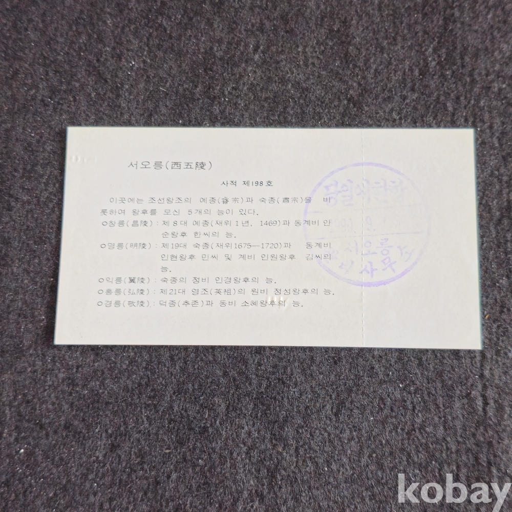 (((근현대사자료/입장권/관람권))) 1990년 서오릉 관람권 (어린이및 청소년 170원)