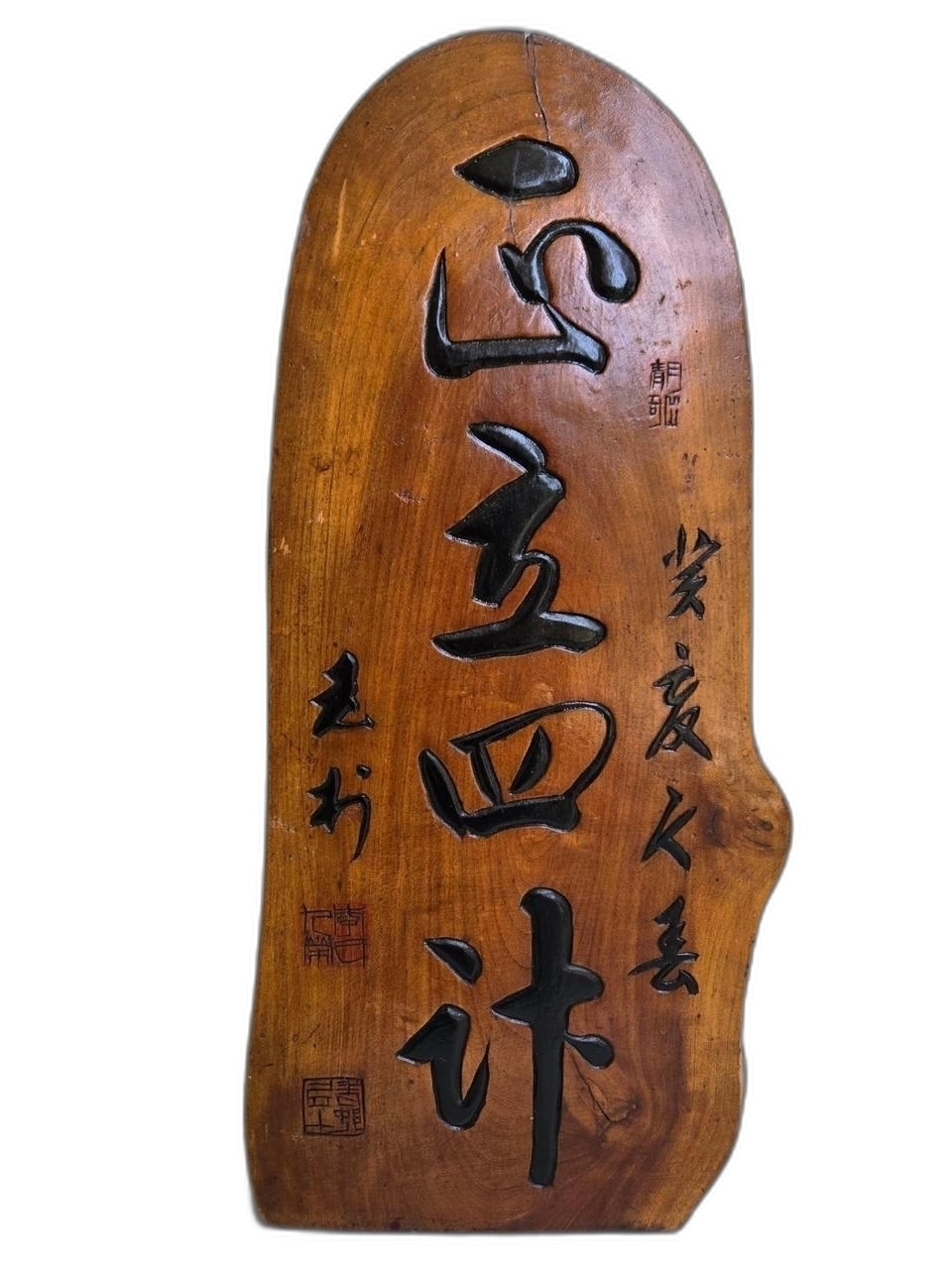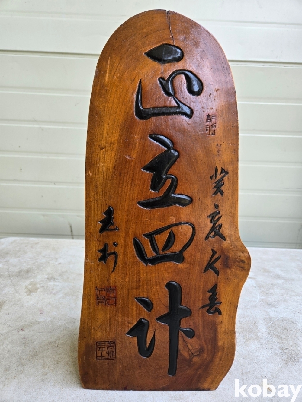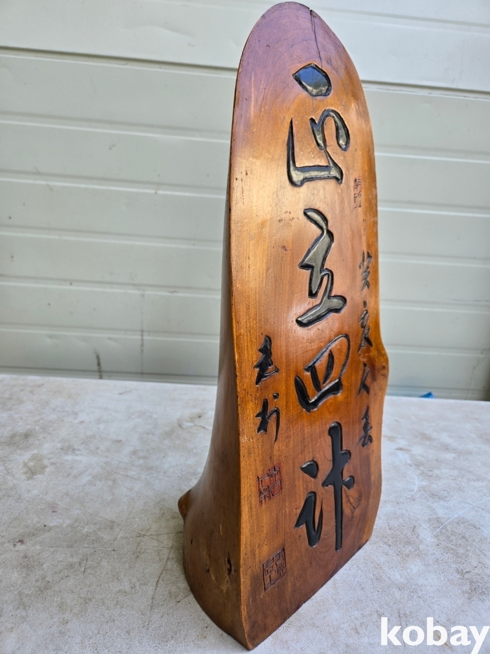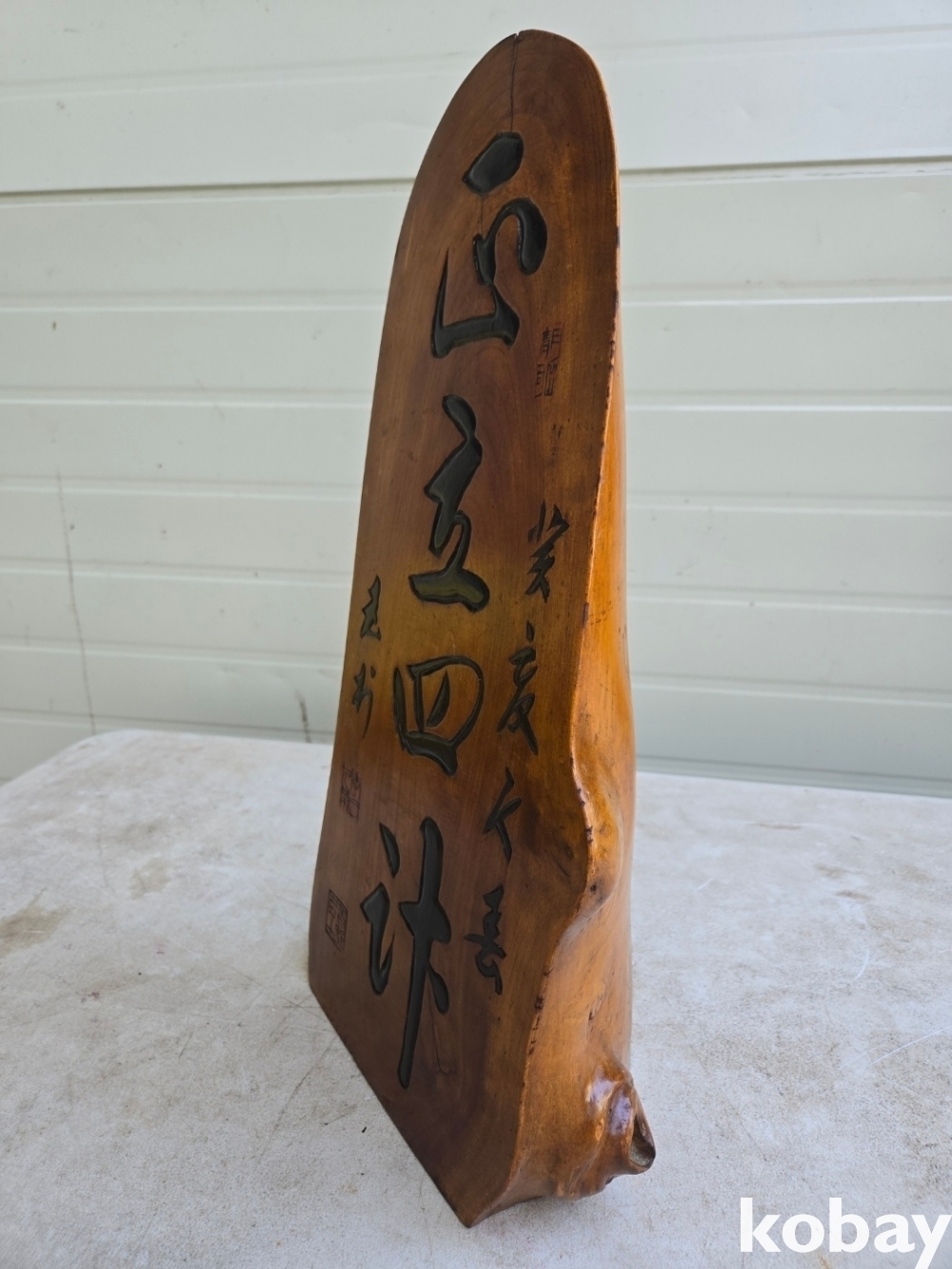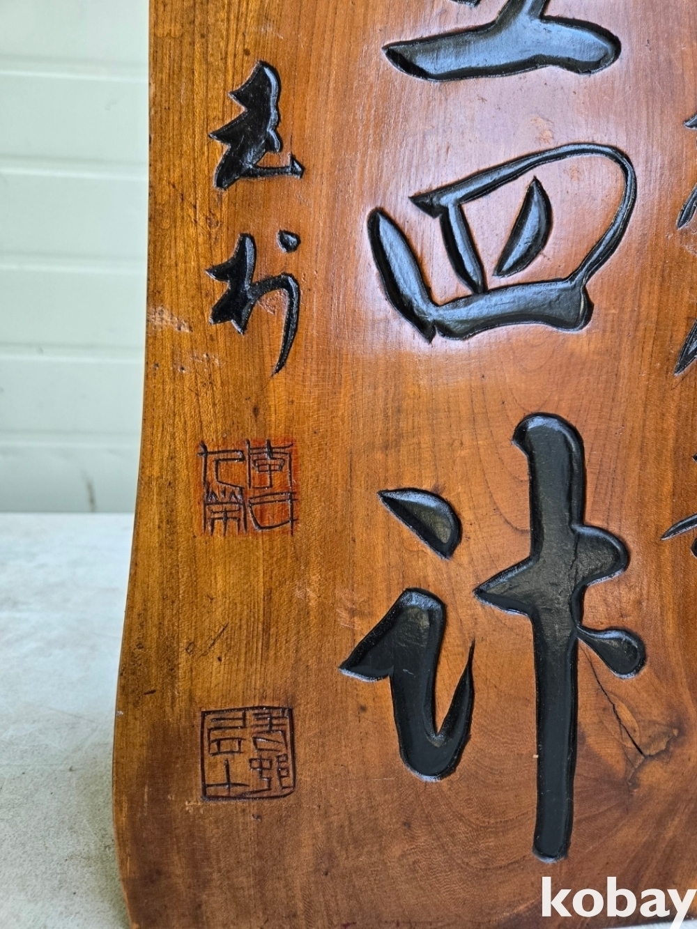통나무에 서예 글씨를 조각 했습니다.