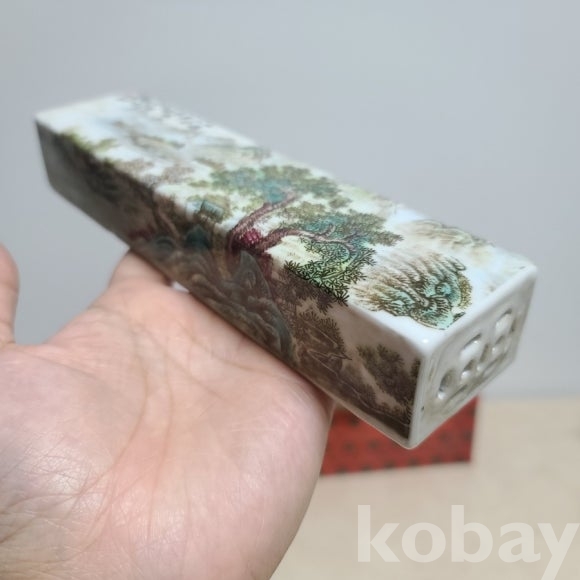 서예나 그림작업을 할 때 사용하는 문진입니다. 사각형태의 도자기에 그림을 그리고 채색을 하였습니다 문진 기능 뿐만 아니라 감상과 수집용으로 좋습니다. 직접 그린 것으로 투각 기법으로 예술성을 겸한 기물입니다
