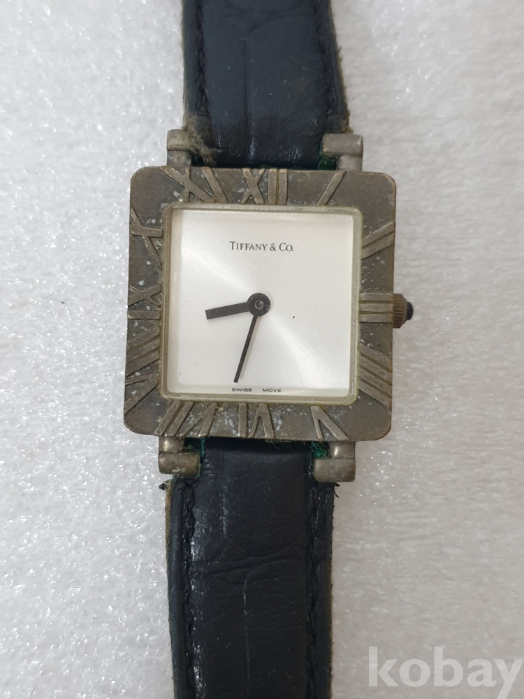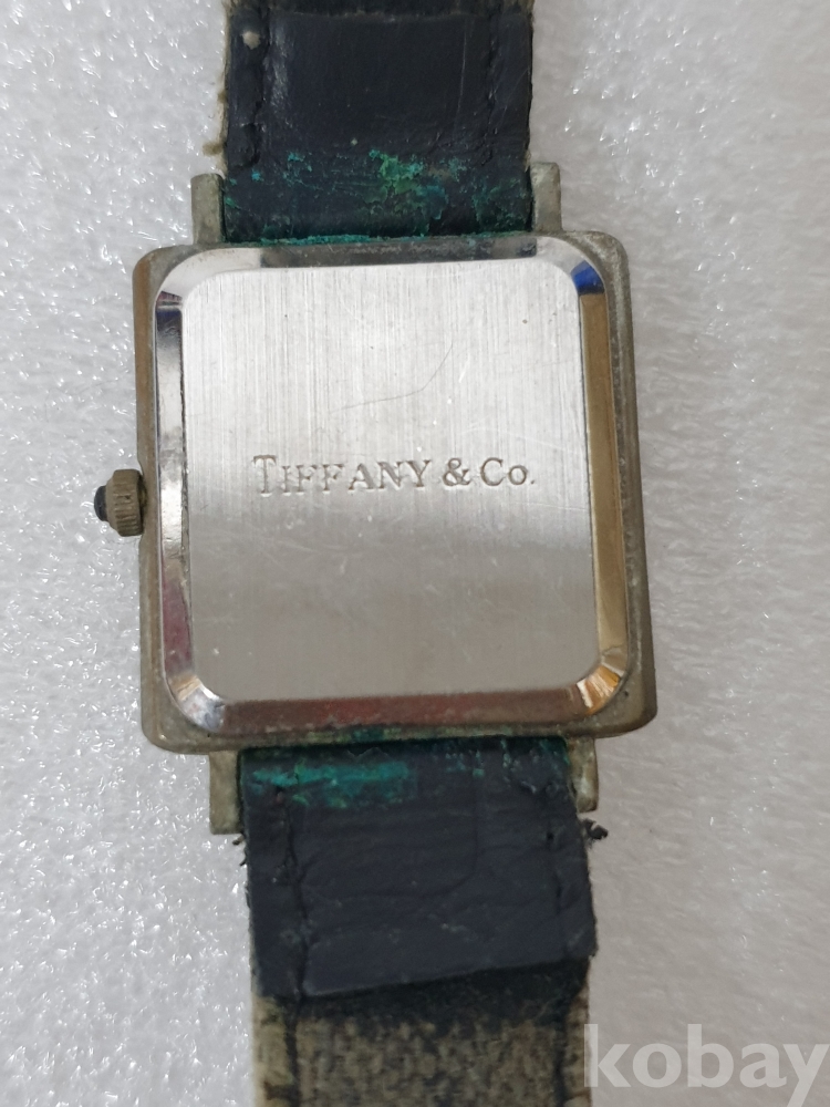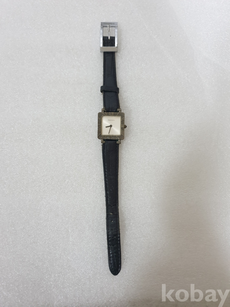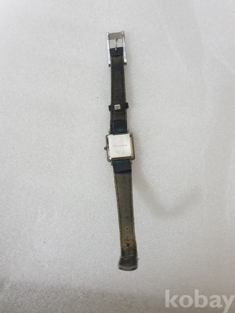 {천원경매} 4-2054 티파니앤코 사각 검정줄 손목시계 (줄낡음, 작동확인안됨, 정품확인불가)