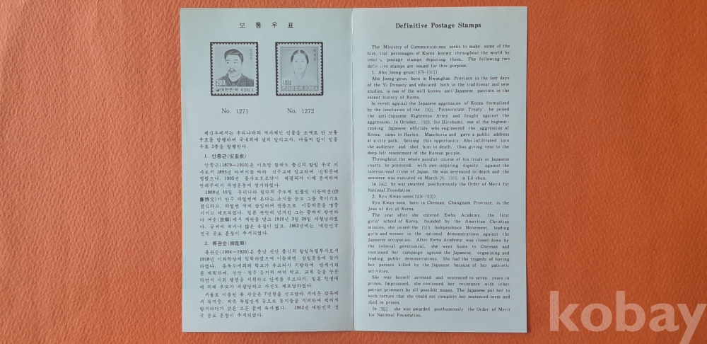 류관순 영문 롤러인 외 1종(안내카드 포함) 초일봉피 2종 입니다.