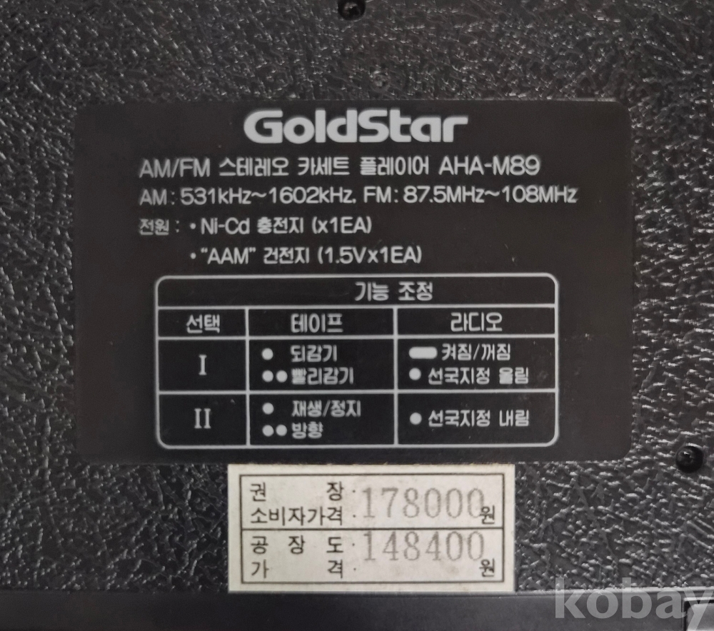 GOLD STAR ‘AHHA’ AHA-M89型 AM/FM 스테레오 라디오 카세트 플레이어 이며