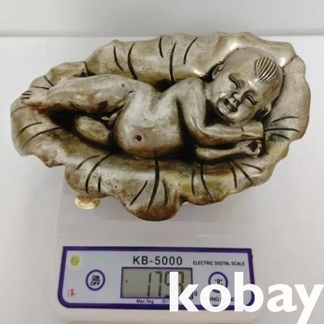 백동 재질로 만들어진 연꽃 속 애기 동자 입니다.