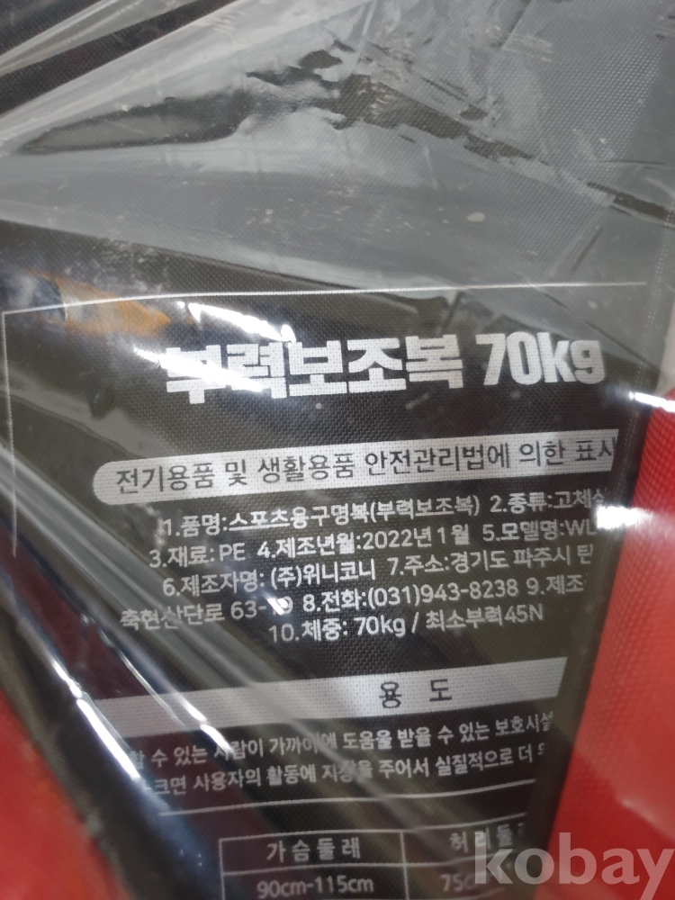 {천원경매} Y-4-0685 빨간색 구명조끼 (체중 70kg, 새상품)