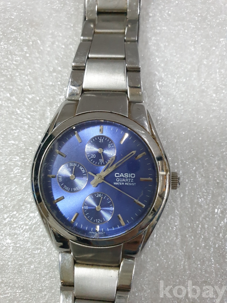 {천원경매}4-2101 카시오 블루 메탈 손목시계 (작동확인 안됨, 정품확인불가)