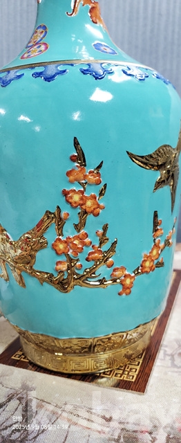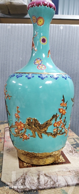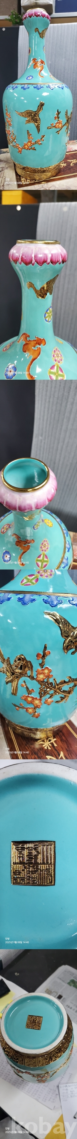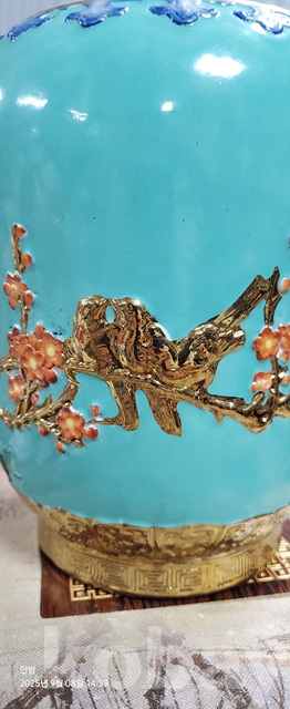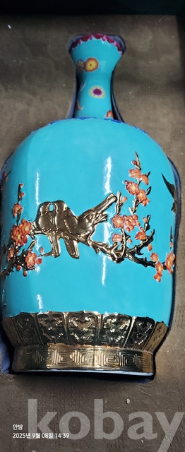 b-193.고급 천상자에담긴오래된 화조문 화병