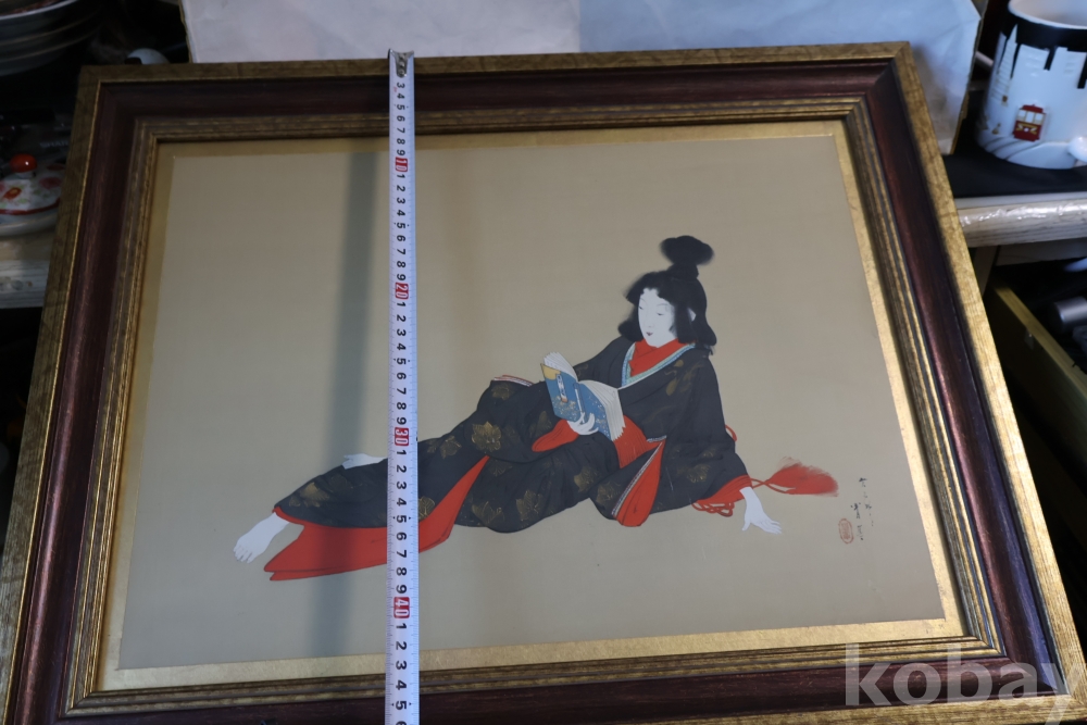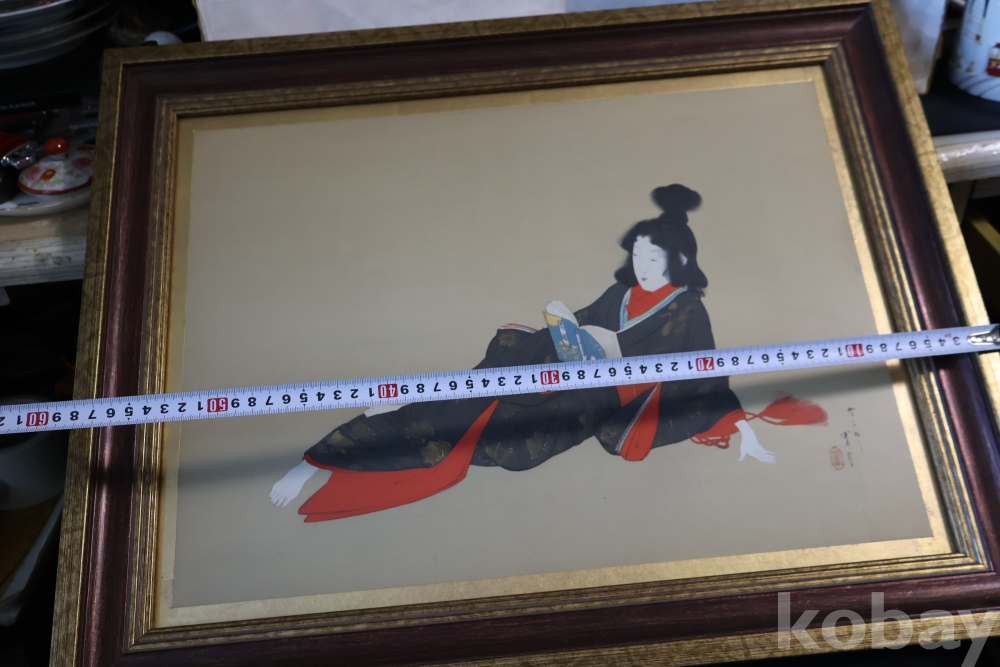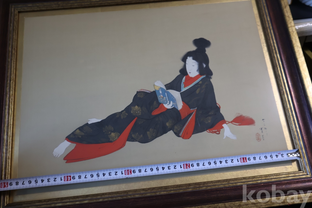 와타나베 세이데이의1851-1918 육필화 임니다 근대의 대화가 임니다 당대의 대화가 일본 육필화 임니다 여인의 독서하는 멋진 자태를 멋지게 표현한 당대의 명화 이며 화가의 낙관을 가진 명화 임니다 액자는 이태리 액자와 박물관 유리를 가진 명화 임니다 액자는 세월의 흔적이 보임니다 105//2123이력서