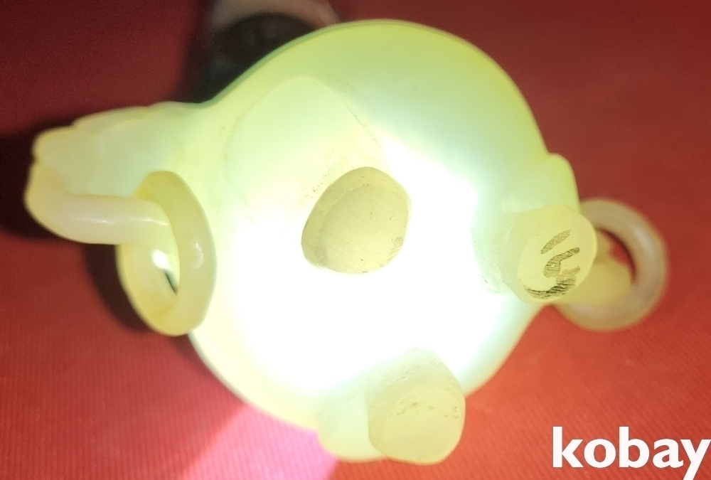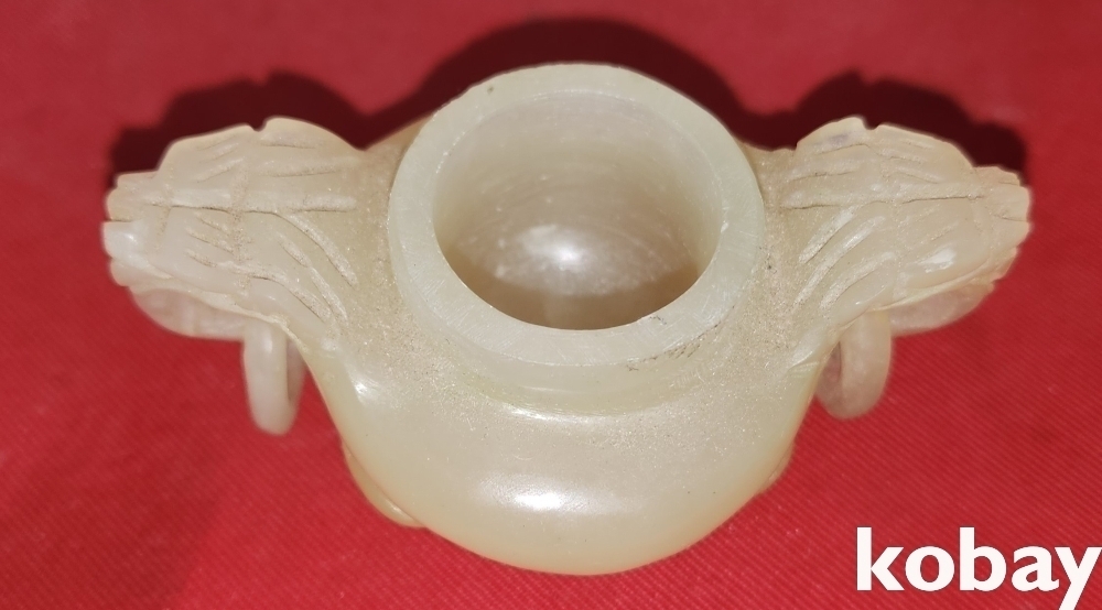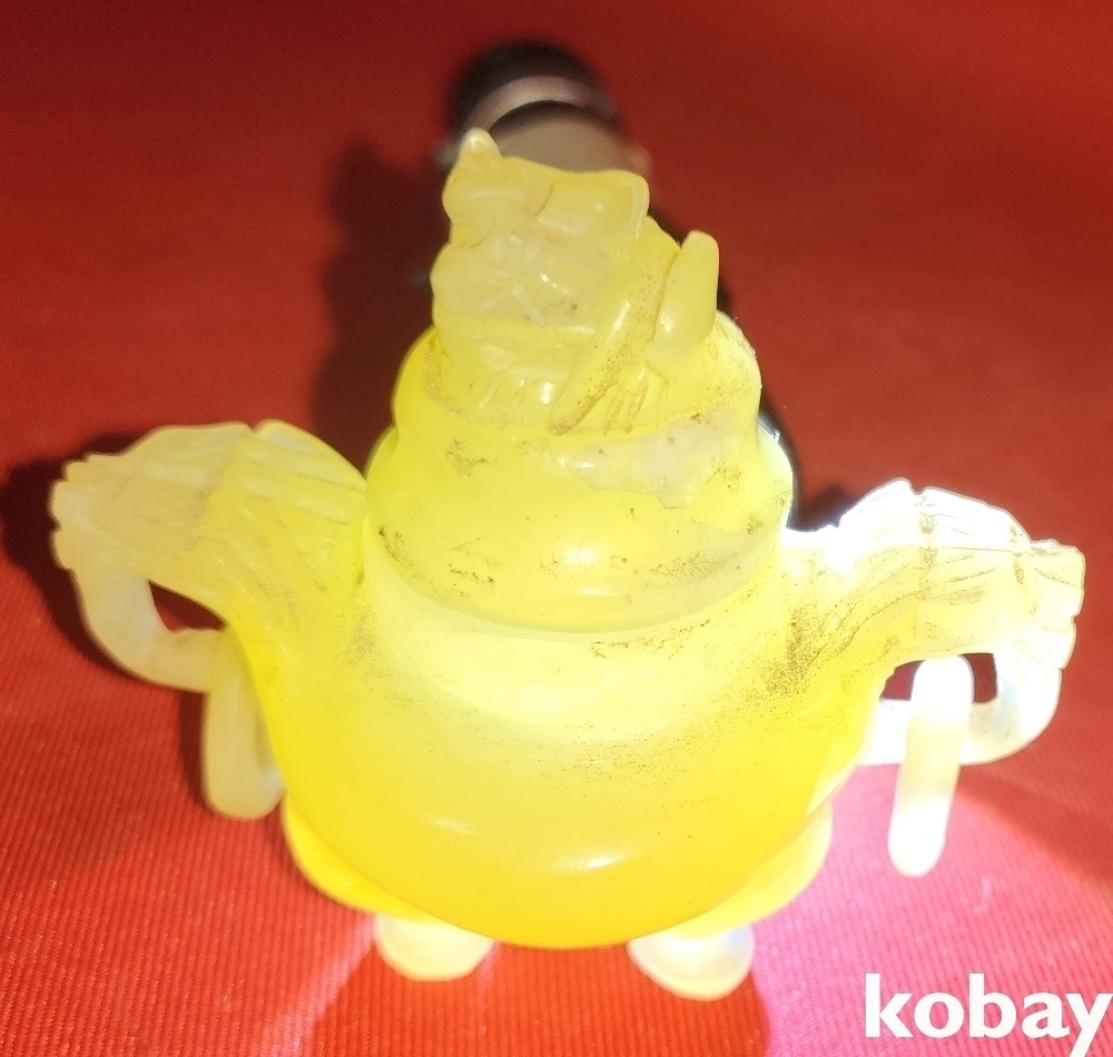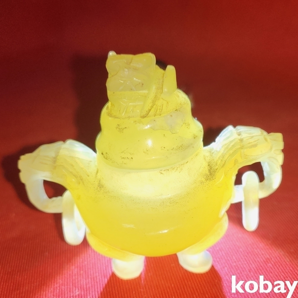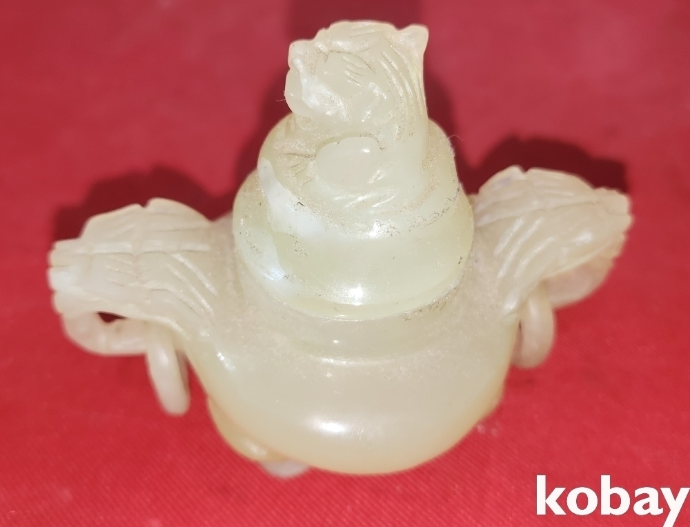 은은한 푸른 빛을 발산하는 옥(玉) 해태문양 삼족 향로입니다,