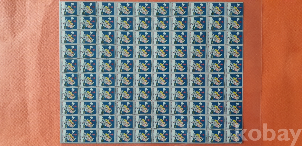 1944년 미국 크리스마스 씰 100매 전지 입니다.