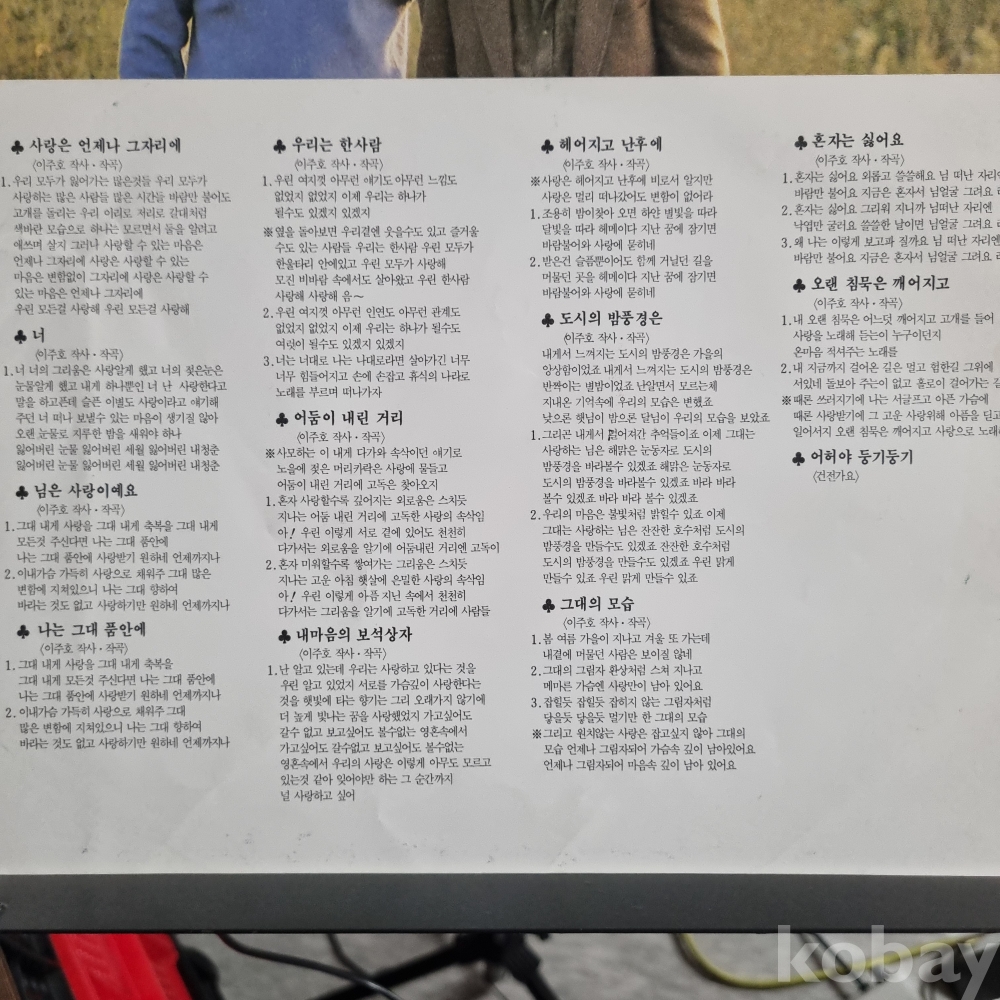 | 자켓상태 | VG : 주름, 접힘, 모서리 찢김 다수 | 음반상태 | VG : 생활 기스 다수, 가벼운 노이즈 존재 | 발매정보 | 알수없음 | 가사지여부 | 유 |