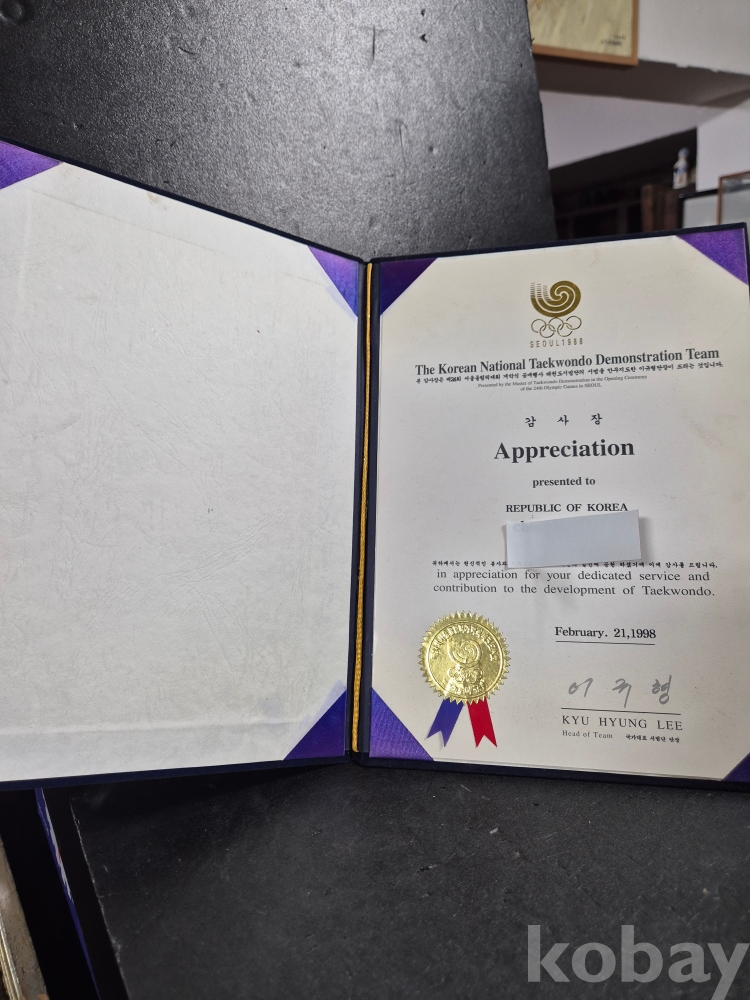 88 서울 올림픽 관련된 아주 귀한 감사장입니다.