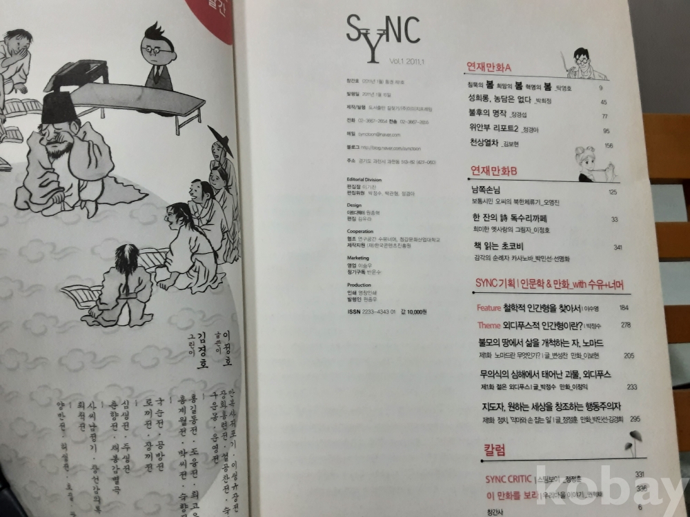 1. '만화, 인문학의 바다에 빨대를 꽂다.'이런 기치를 내걸고 다양한 사회 현실과 인문, 역사 등을 담은 격월간 인문만화교양지 'SYNC“ 창간호