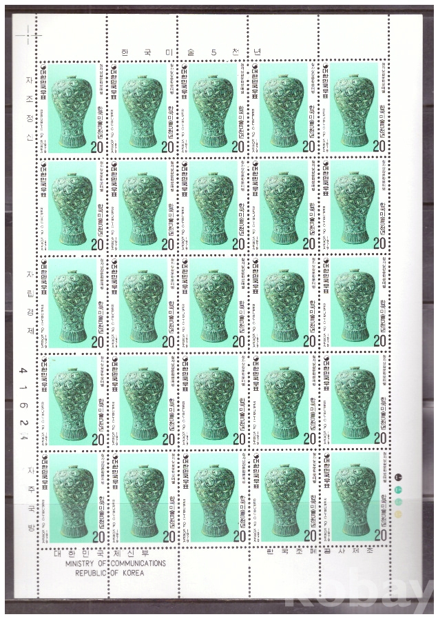 (한국전지) 1979.4.1 한국미술 5천년-청자상감운학문매병 sheet of 25 MNH