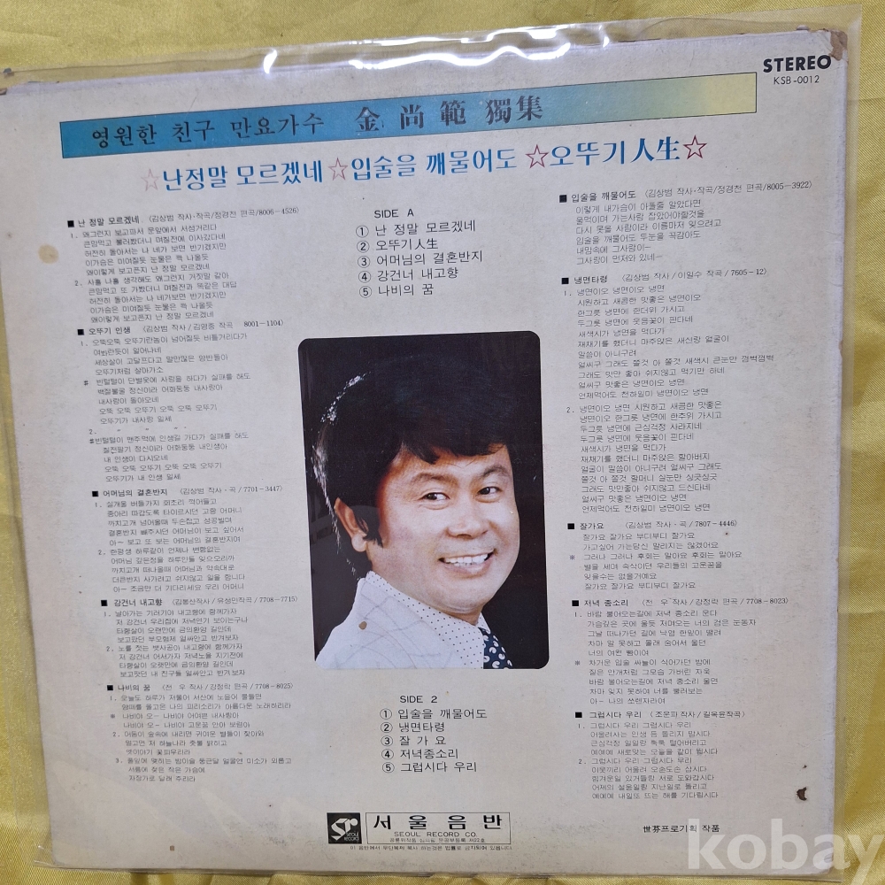 | 자켓상태 | EX : 약간의 마모, 모서리 찢김 존재 | 음반상태 | EX : 재생에 영향 없는 가벼운 기스 존재 | 발매정보 | 알수없음 | 가사지여부 | 무 |