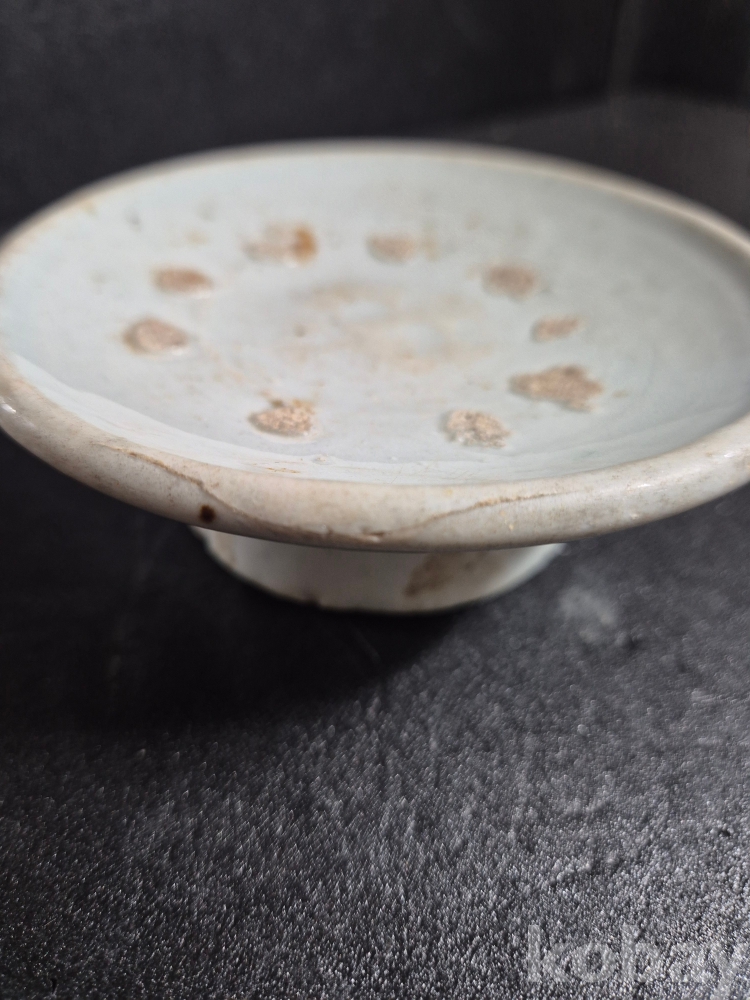 조선 후기 고창가마에서 나오는 백자 색감이 아주 좋은 낮은 굽다리 접시입니다.