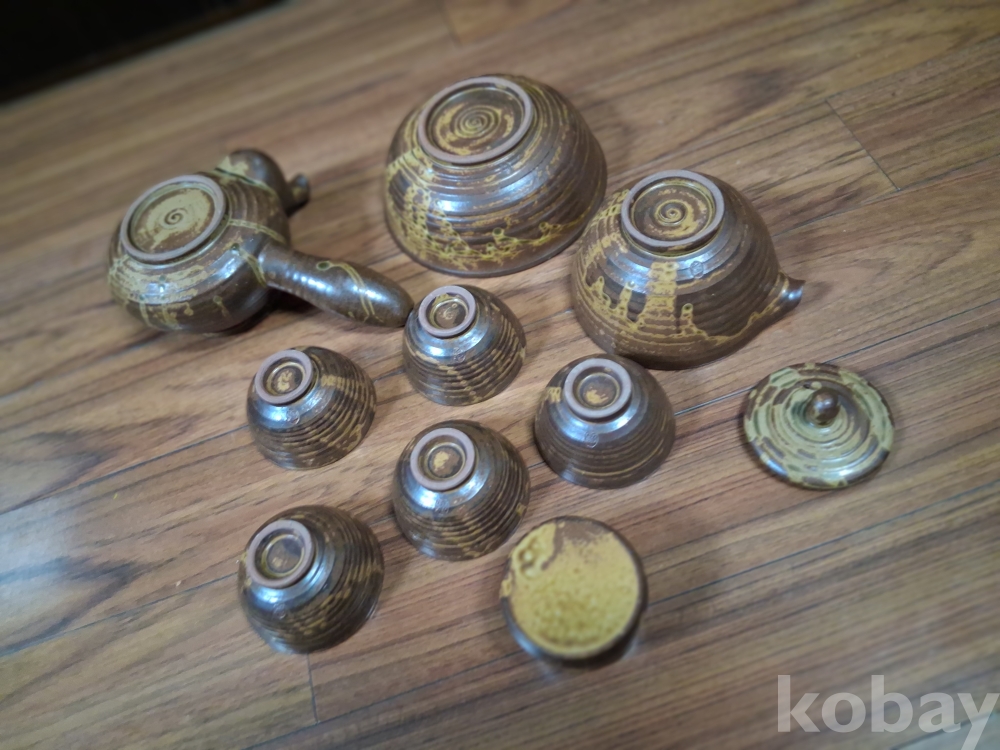 다관 20cm x 10.5cm 숙우 13cm x 6.5cm 퇴수기 15cm x 6cm 걸름받침 6cm x 4cm 나눔잔 7.5cm x 4.5cm