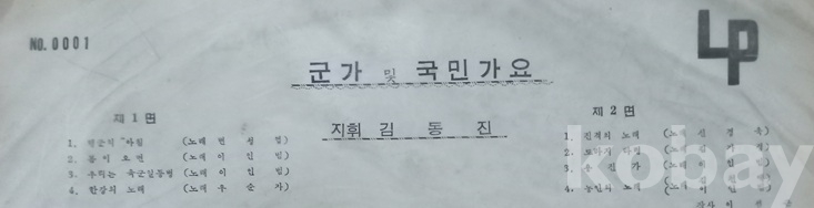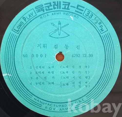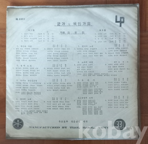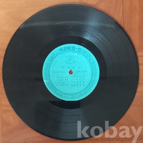 이게 아주 우리나라에서 앨피를 제작하기 시작한던 때 나온 초창기 음반이지요. 육군레코드에다 KBA, KBS KBCA레코드 등등이 그런거 같은데 다 1959년도를 전후한 해였던것으로 보이고, 이 육군레코드 음반(0001계열)은 총 몇장이 나왔는지 모르겠읍니다 내가 가진게 이걸 포함해서 0002, 0003 등 서너장은 되지 싶읍니다. 또 한번에 다같이 나온건지 시차를 두고 시리즈로 나온것인지도 알수가 없고요
