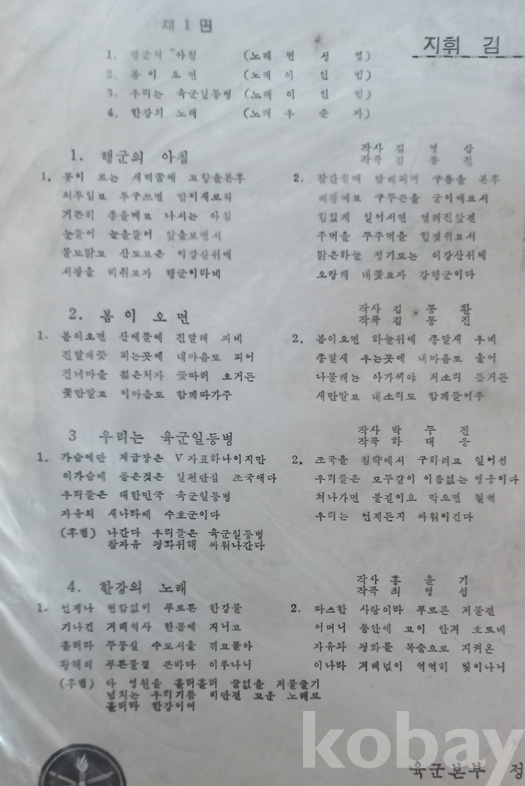 3. 우리는 육군 일등병(박두진 작사,하대응 작곡,이인범 노래).