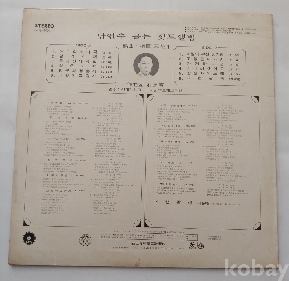 남인수Lp/애수의 소야곡,감격시대,이별의 부산 정거장