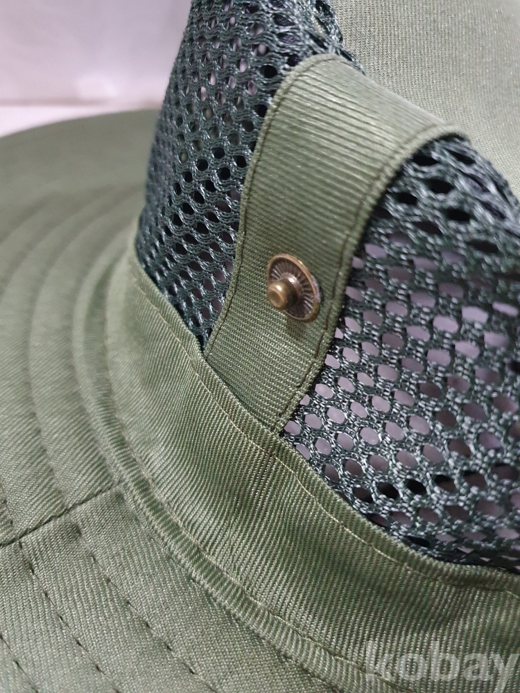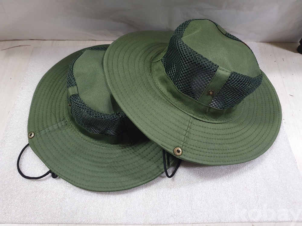 {천원경매} 4-0827 메쉬 챙 모자 2개 (초록색, 똑딱이 한쪽 없음)