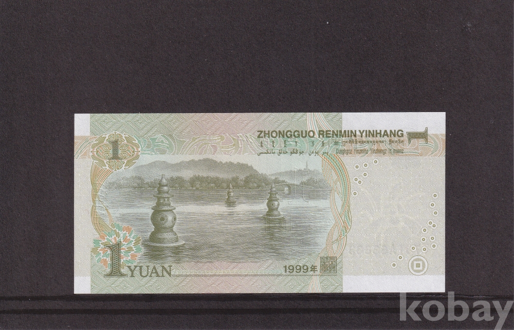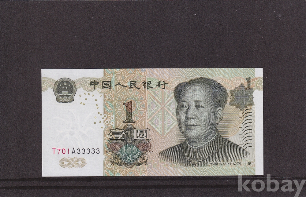 - 중국 1999년 1위안 5자관 33333 솔리드 미사용 지폐