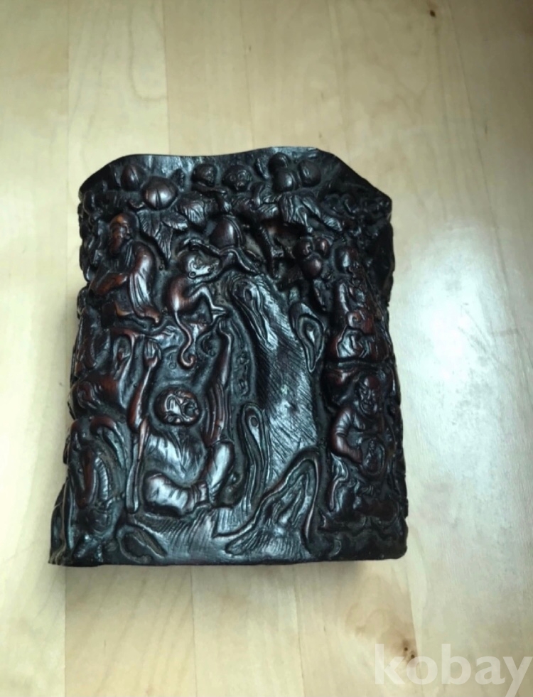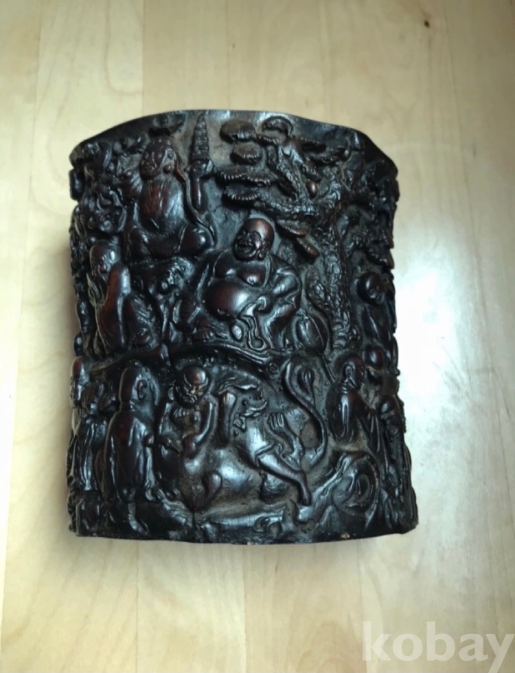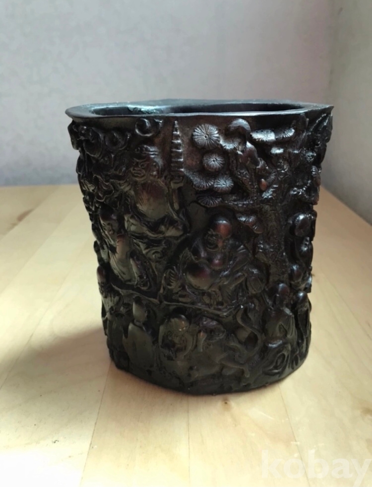 고급 십팔나한 조각 붓곶이통 지름12.3x8cm 높이13.1 cm