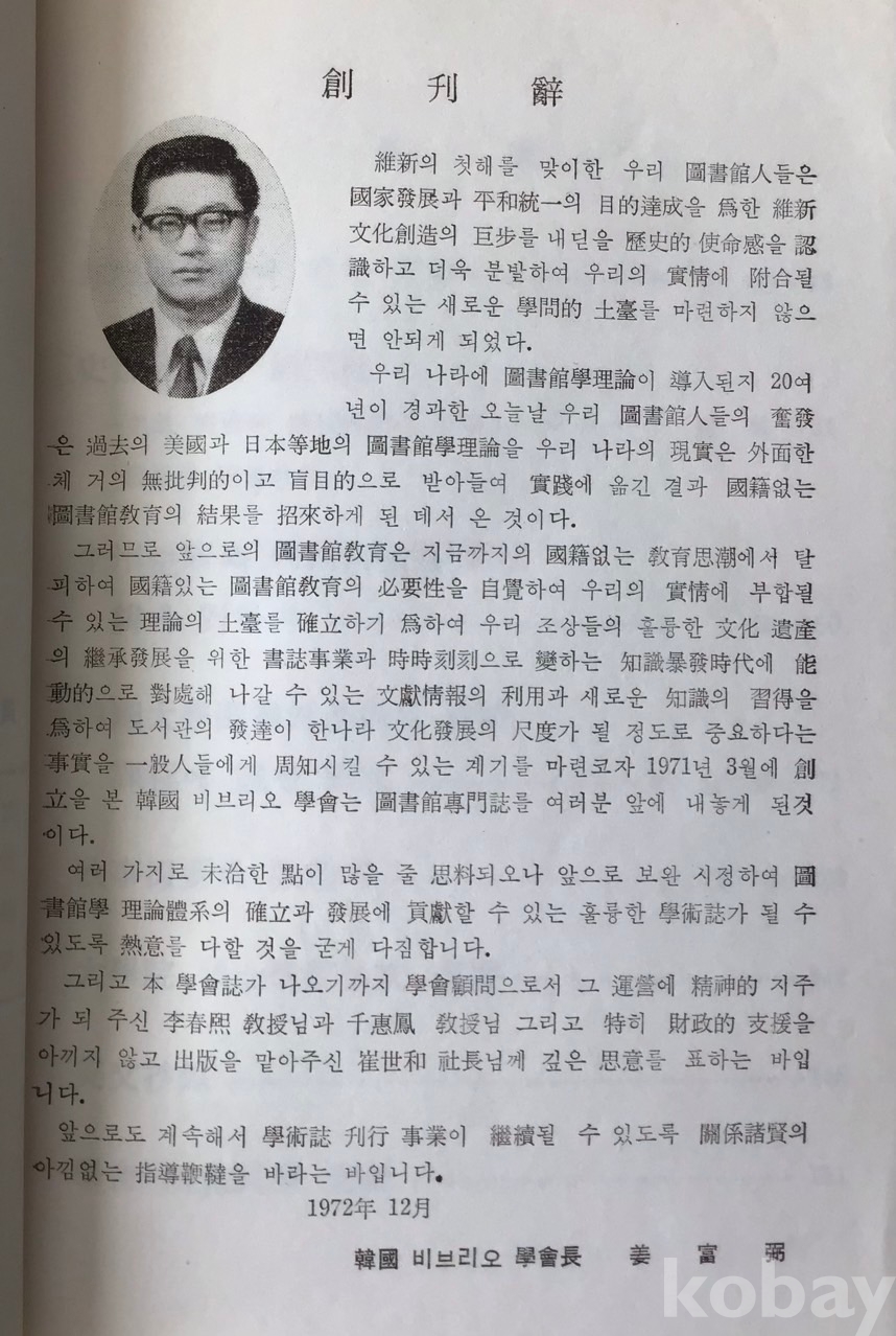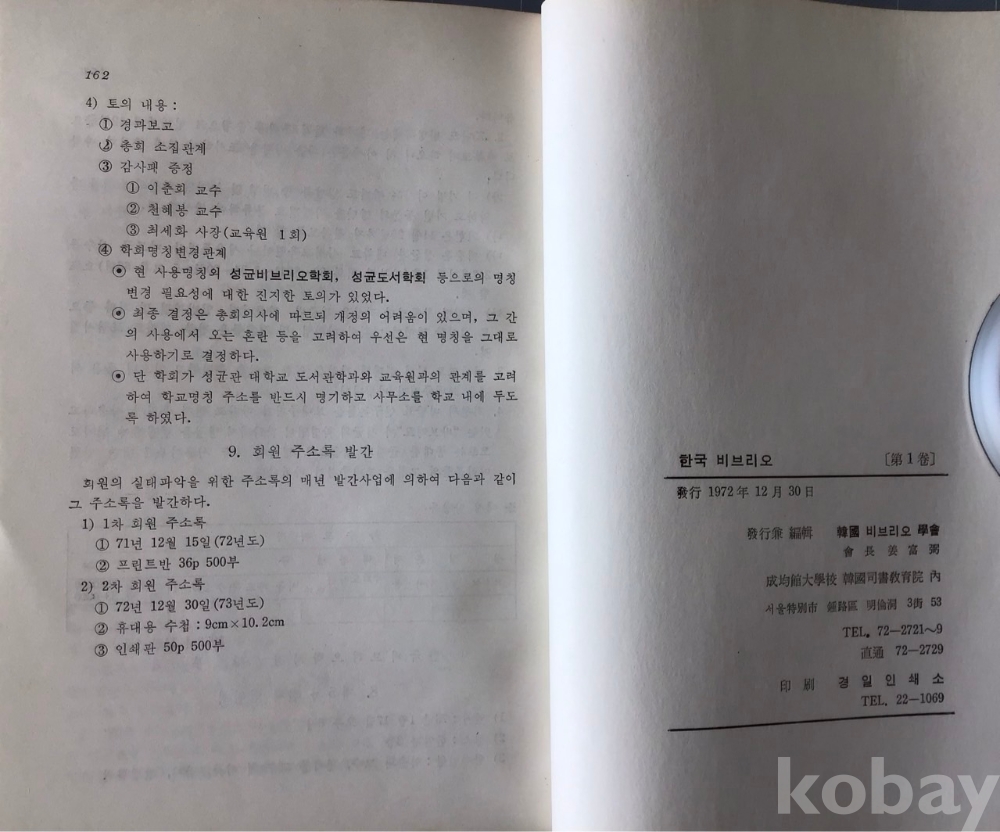 [X44] <<한국비브리오>>제1집 / 한국비블리오학회 편, 1972년 12월 30일 발행 초판