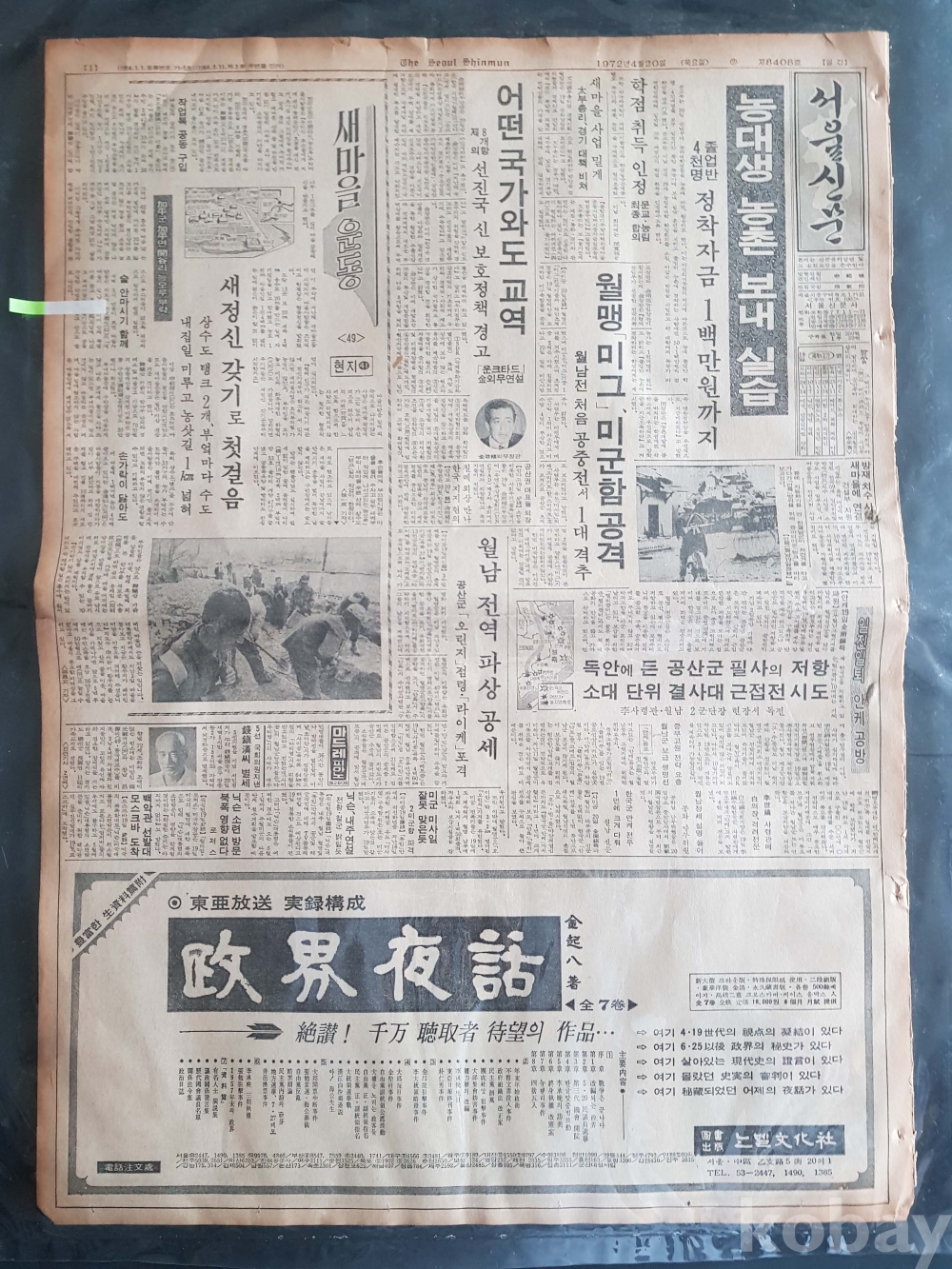 가평군 가평면 개곡리 새마을운동 기사가 실린 1972년4월20일 서울신문