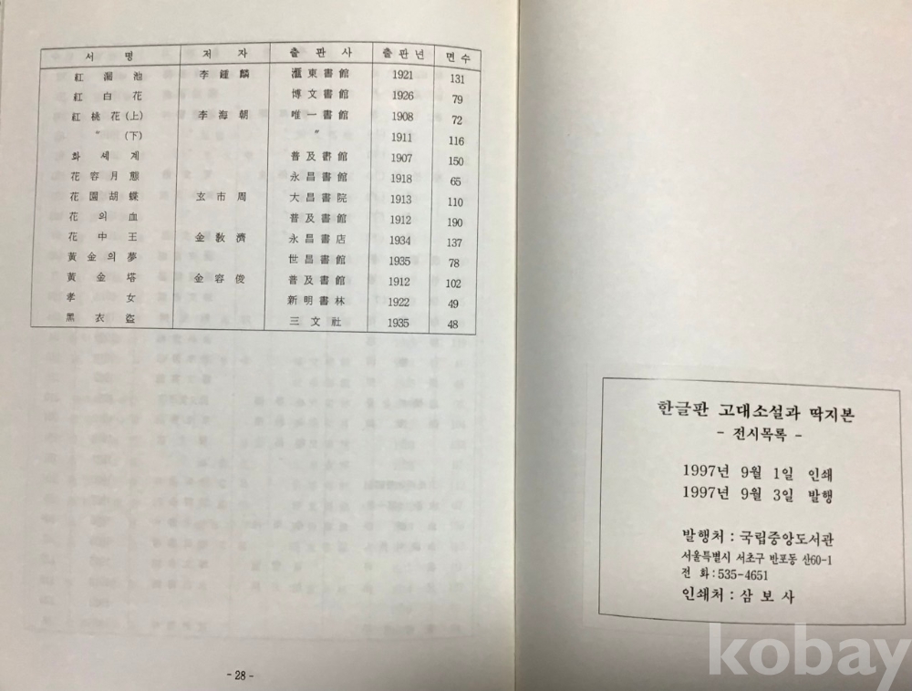 [X75] <<한글판 고대소설과 딱지본>> / 국립중앙도서관 편, 1997.9.3. 초판