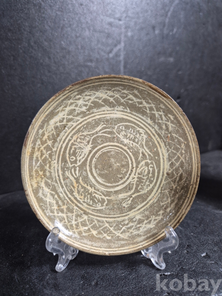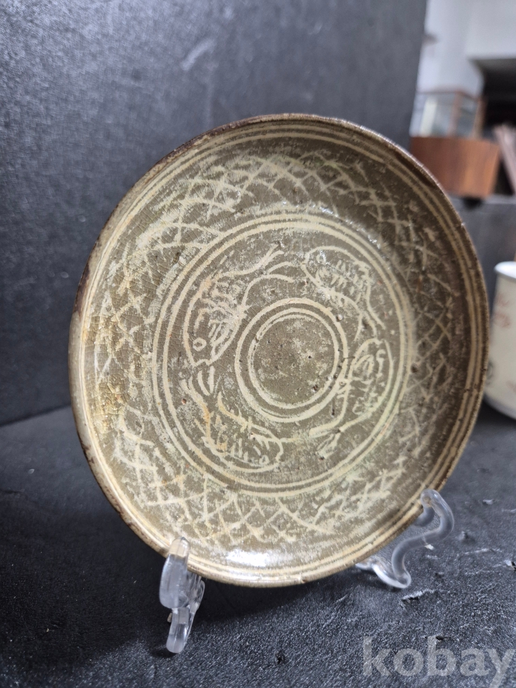 초창기인 15년전 지방 경매장에서 치열한 경쟁을 하여 구입한 기물로 고기가 4마리나 백상감으로 그려져 있는 희귀 기물입니다.