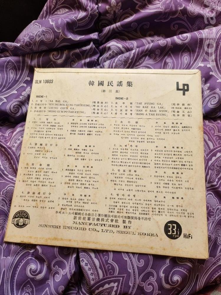 LP판 한국민요전집 코리안 포크송 제3집(자켓O)