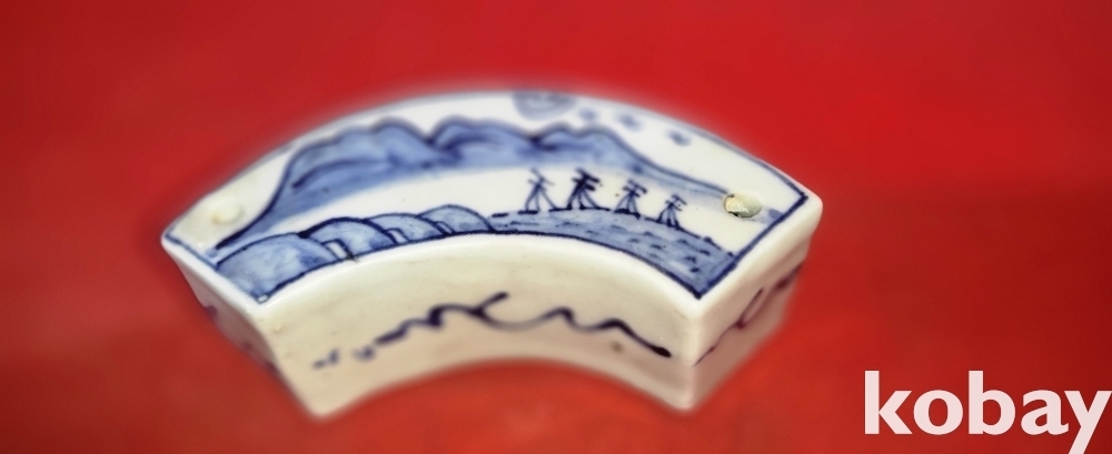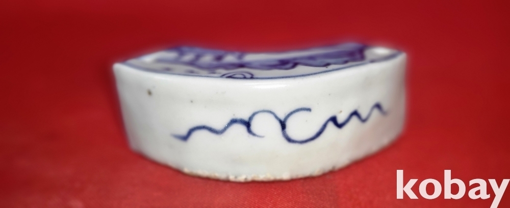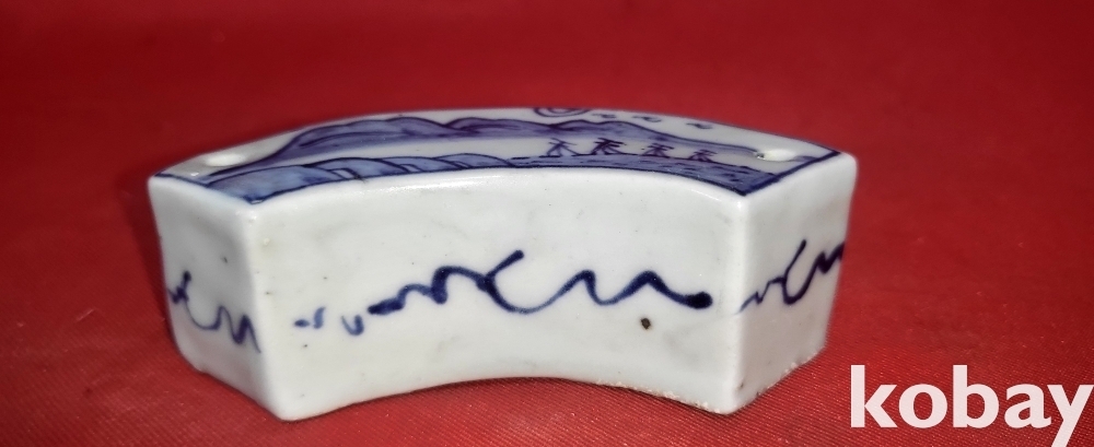 조선시대 청화백자 산수문양 필가(筆家)겸 연적(硯滴) 진품입니다,