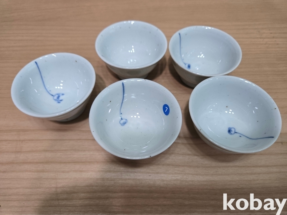 연꽃 표현 다완 도자기 5개 입니다.