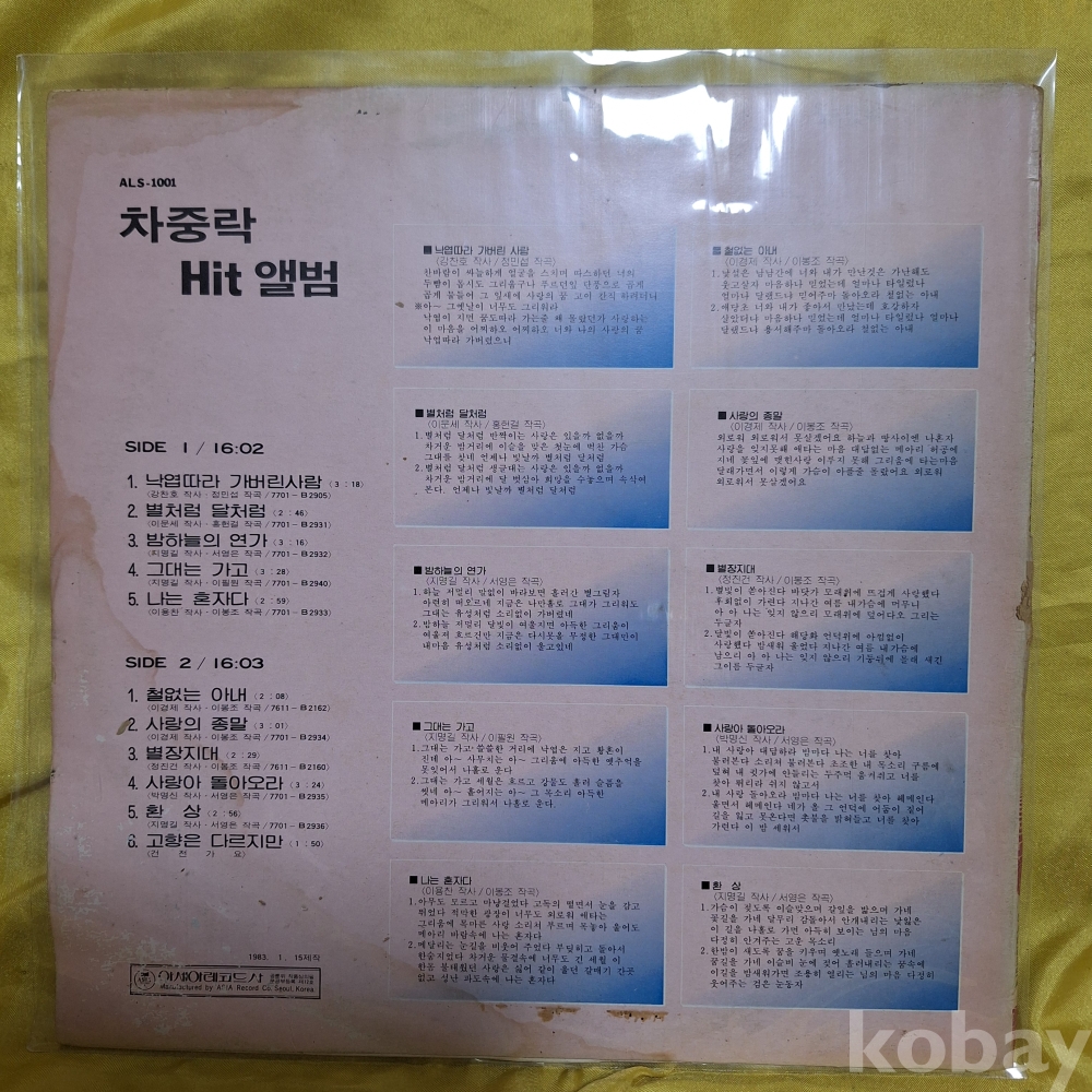 **년도(년식)이 있는 중고 음반이라 작은 팀과, 사진상 엷은 스크릿치는 잘 안보일수 있고