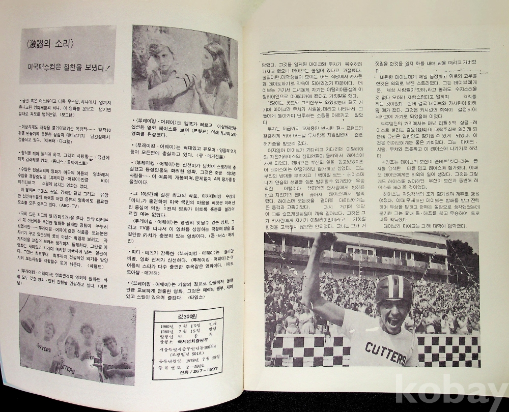 *부레이킹 어웨이/소책자, 팜플렛-출판사/국제영화출판부, 1980년, 값300원