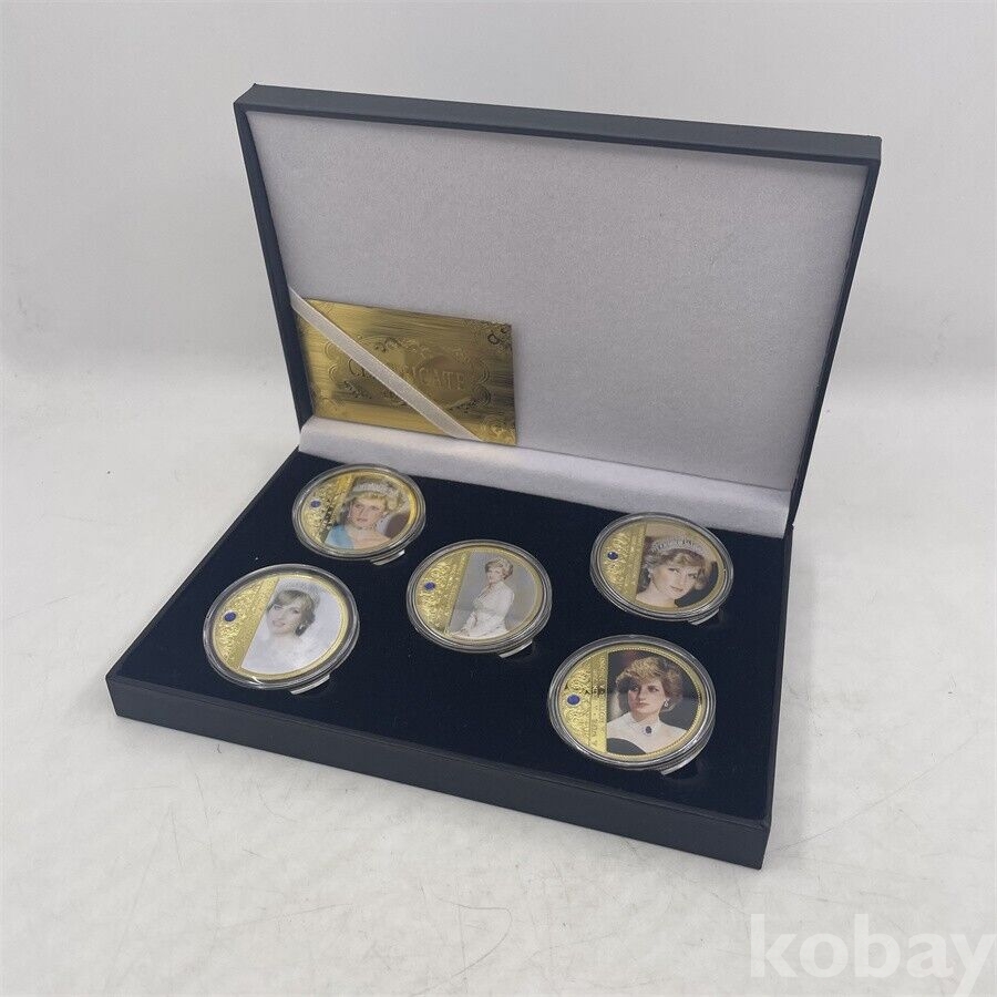 5pc Princess Diana 1961-1997 Gold painted Commemorative Coin For Collection In Gift Box