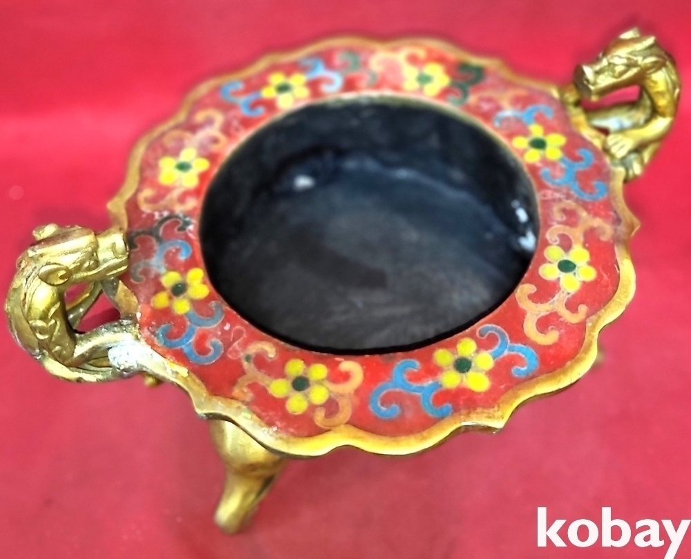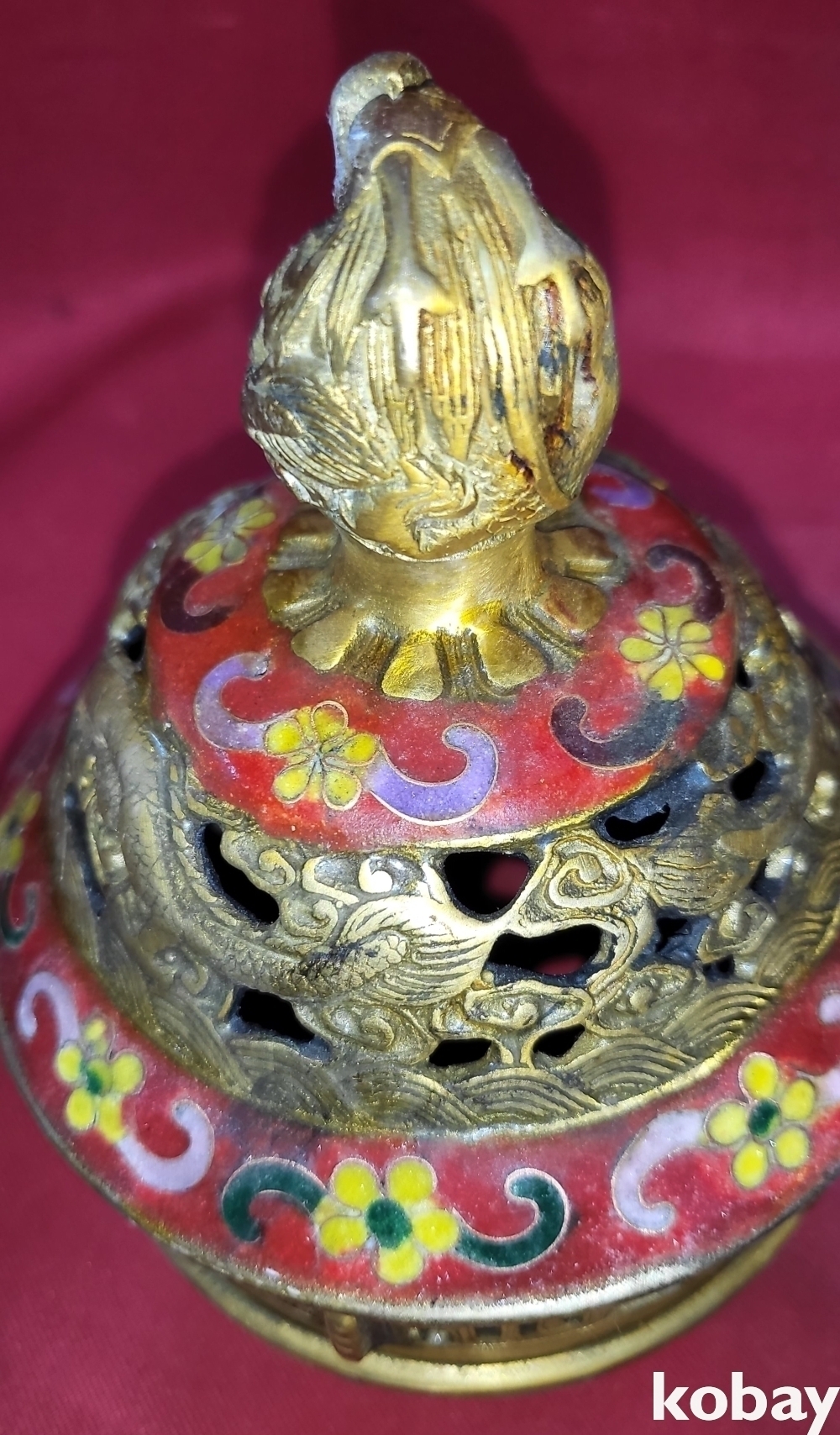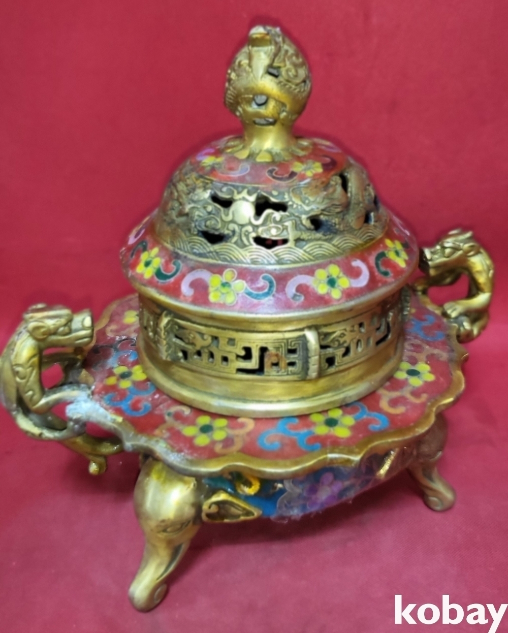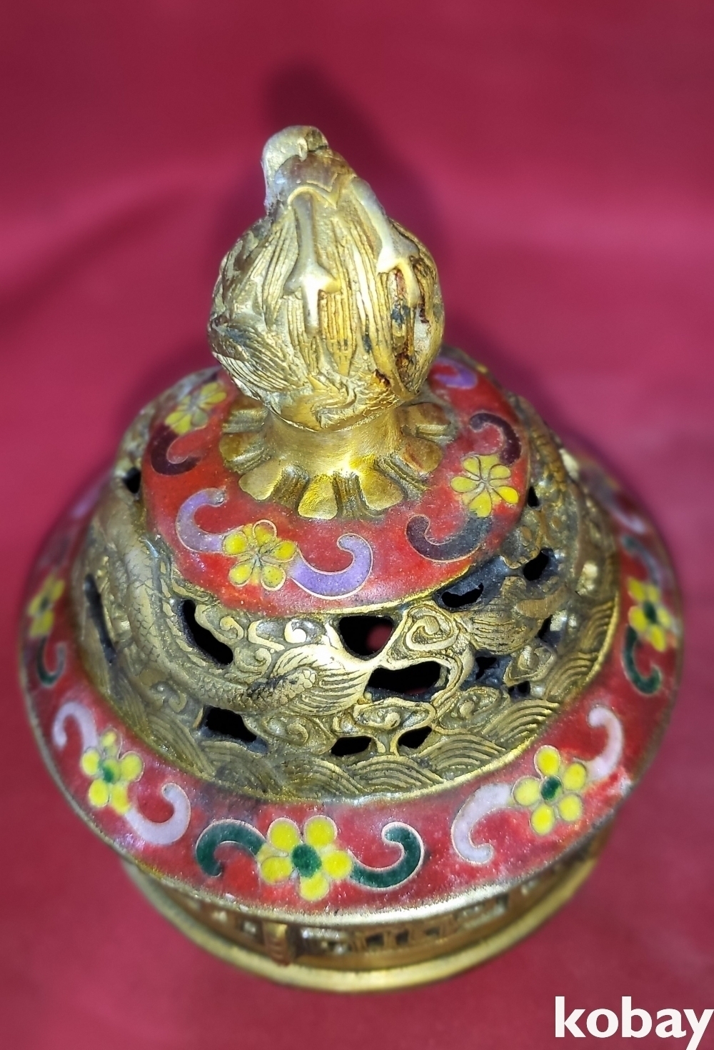 선덕연제 관지있는 동태범랑(칠보) 뚜껑 용문양에 해마 양귀와 삼족 코끼리 문양 향로입니다,