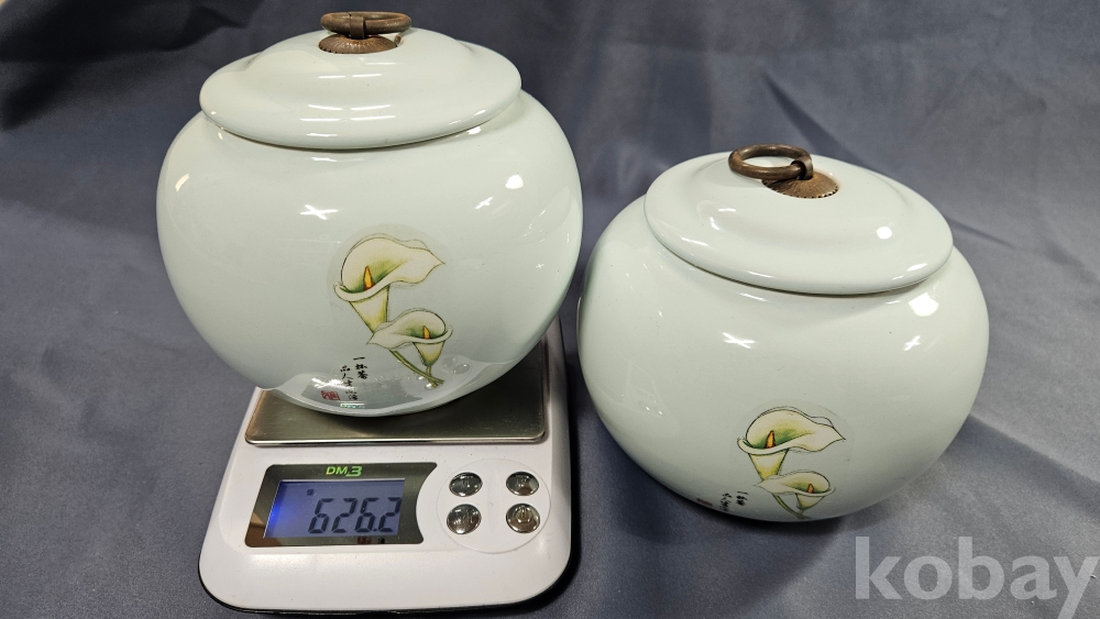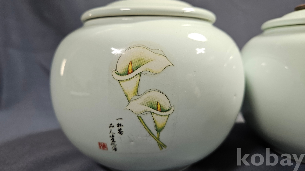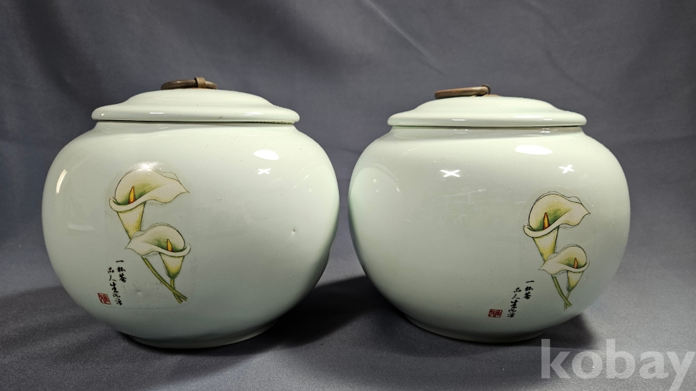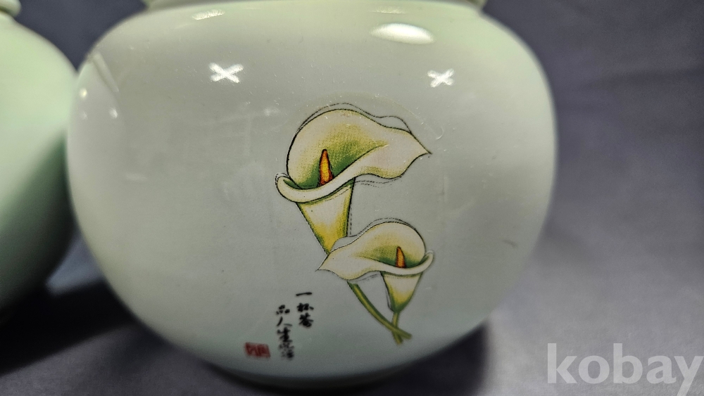 하얀꽃문양이 들어있는 미사용 도자기 차호2점 일괄입니다.